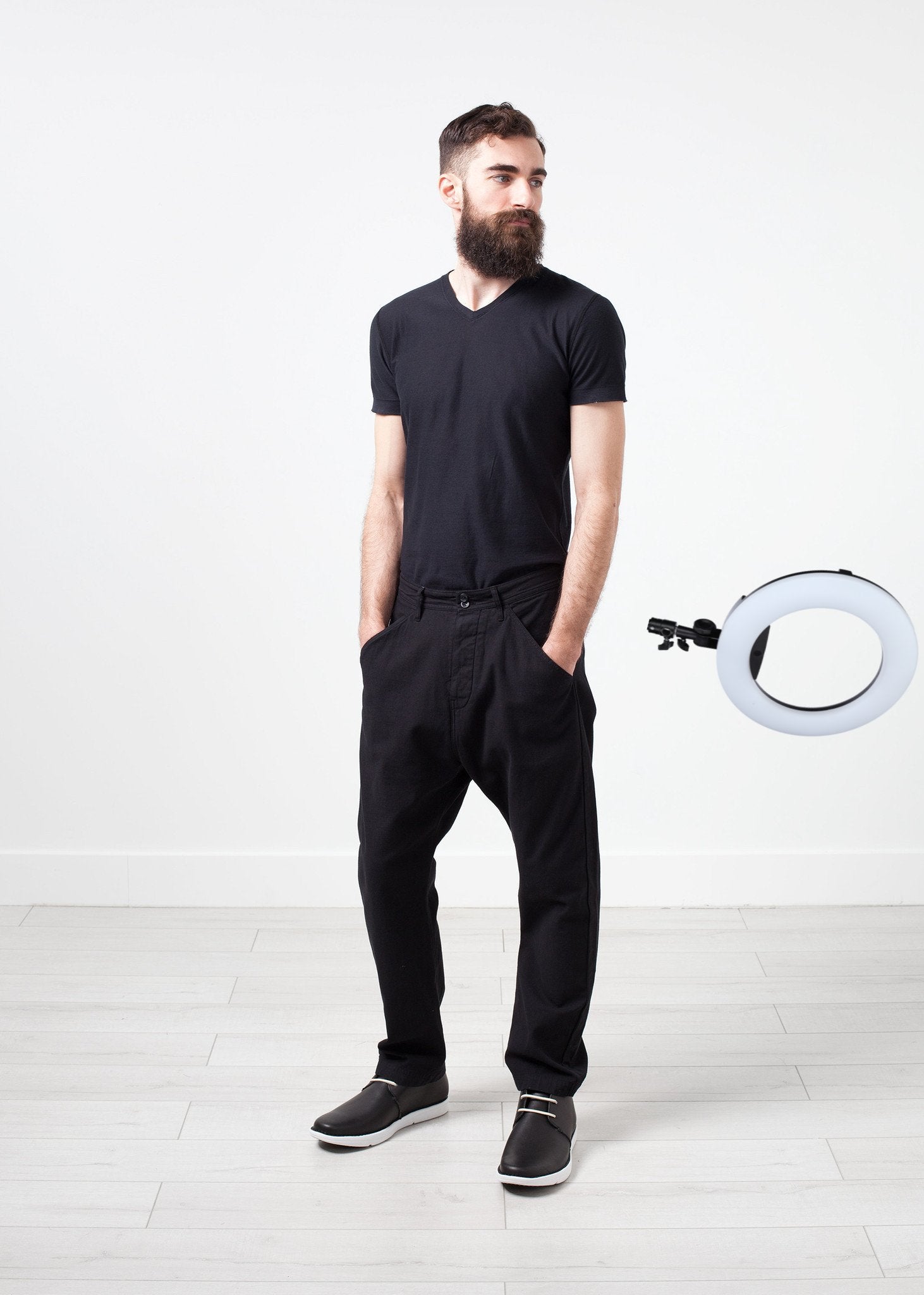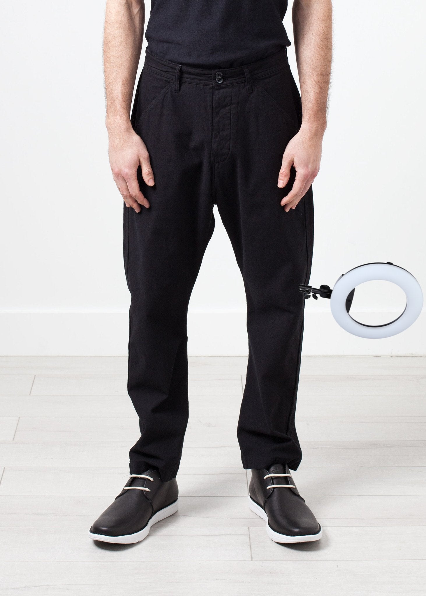 With just enough room to be "oversized," the Balda Pant from Hannes Roether makes functional comfort its priority. Back waist tie for adjustability. Drop crotch. Color Black. 100% Cotton. Made in the EU. Addis is wearing a Small.