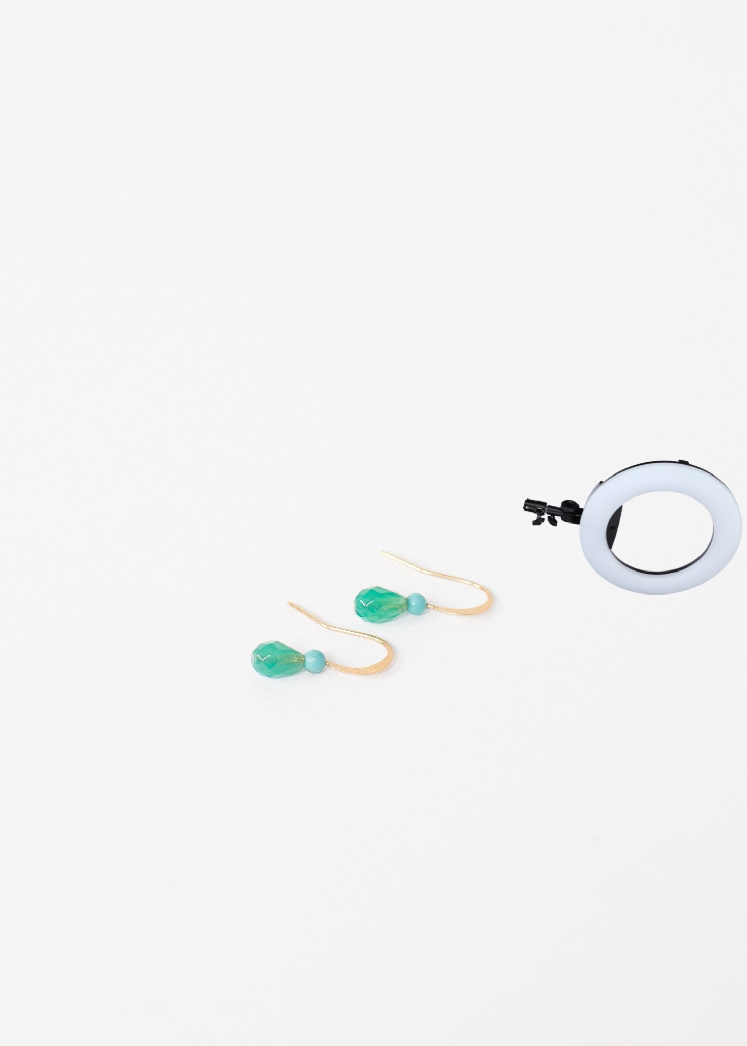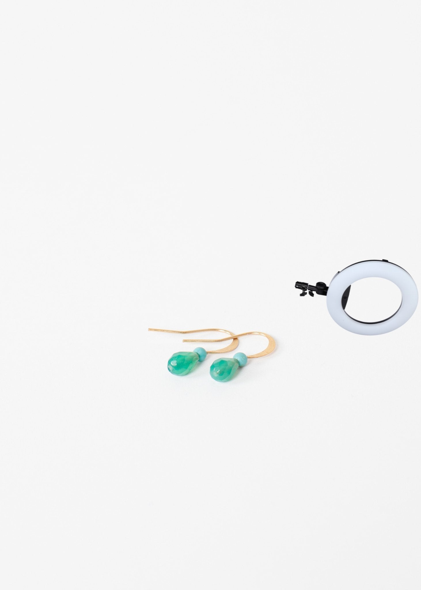 Quintessential elegance with delicate details. With the ease of the fish hook earring, the Bi-Goutte offers a handsome everyday piece. 5 Octobre. Color Green. Made in France.