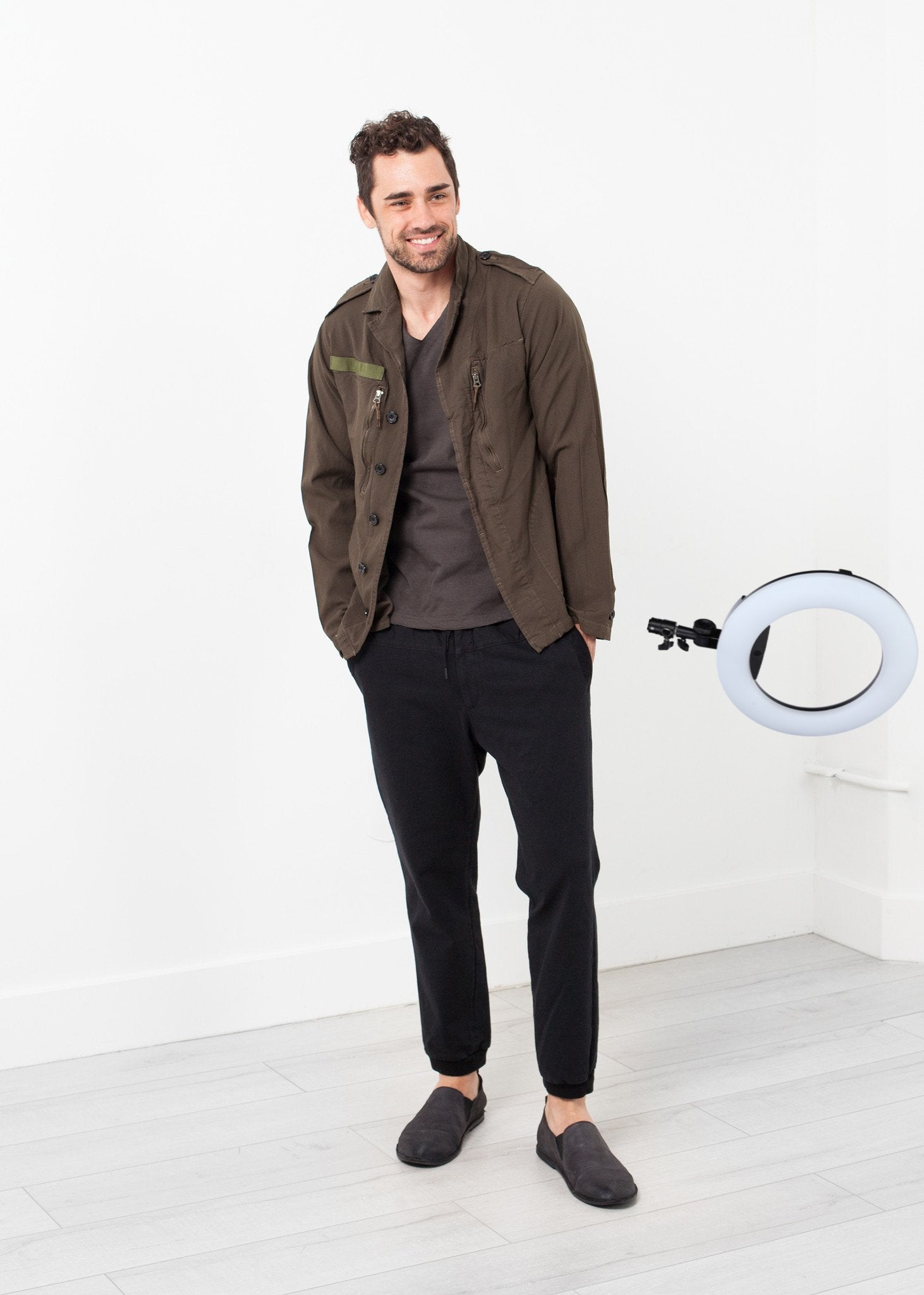 Sage de Cret is a menswear label made for men, and made to be worn as however they see fit. Paying homage to the vibrant tradition of menswear, their pieces are unconstrained by convention. The Zipper Jacket is a slim fit with an army aesthetic. Covered button placket at front. Two exterior zip pockets, side angle pockets at front. Mesh Lining. Color Olive. 100% Polyester. Made in Japan. Jacob is wearing a Large.