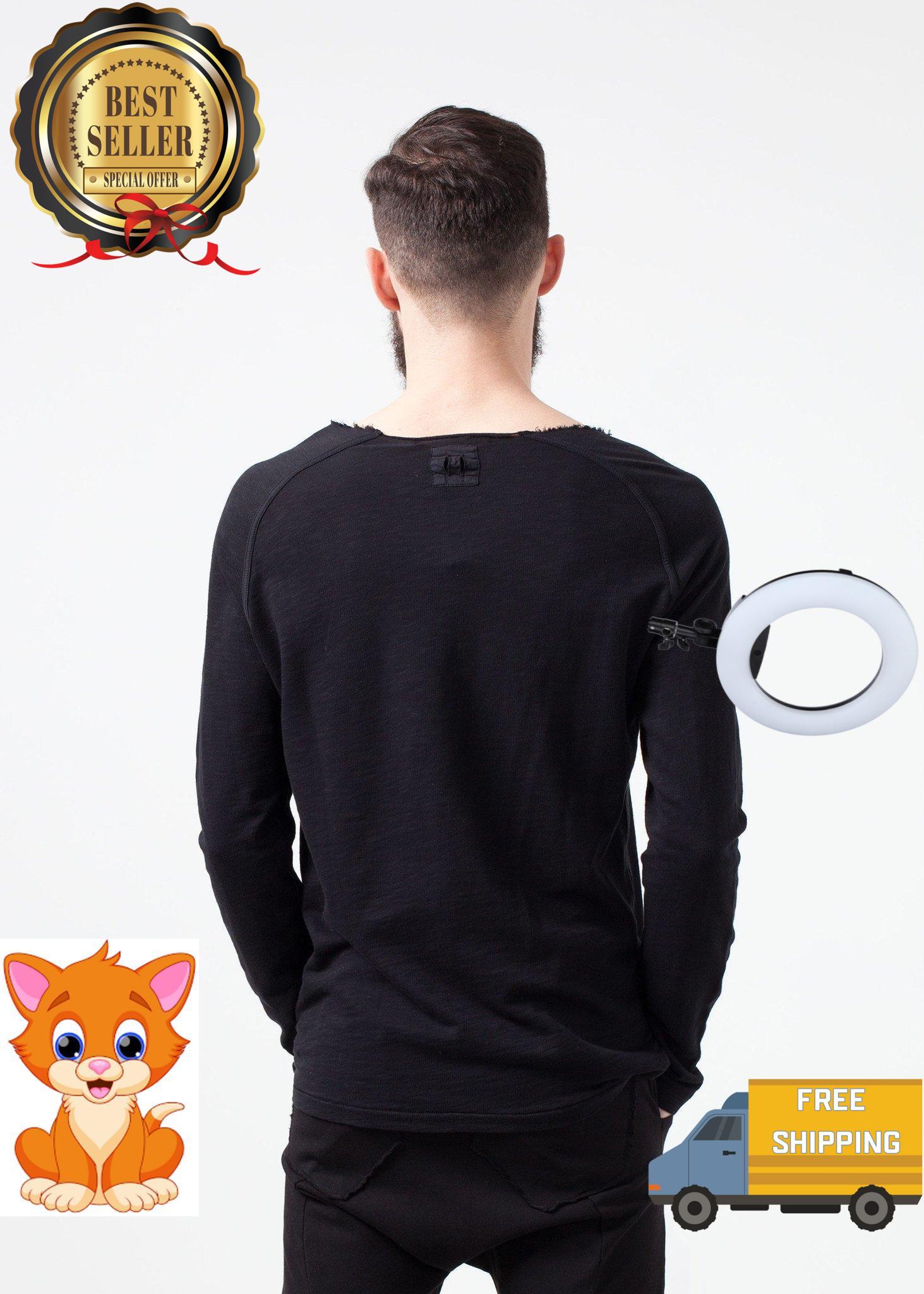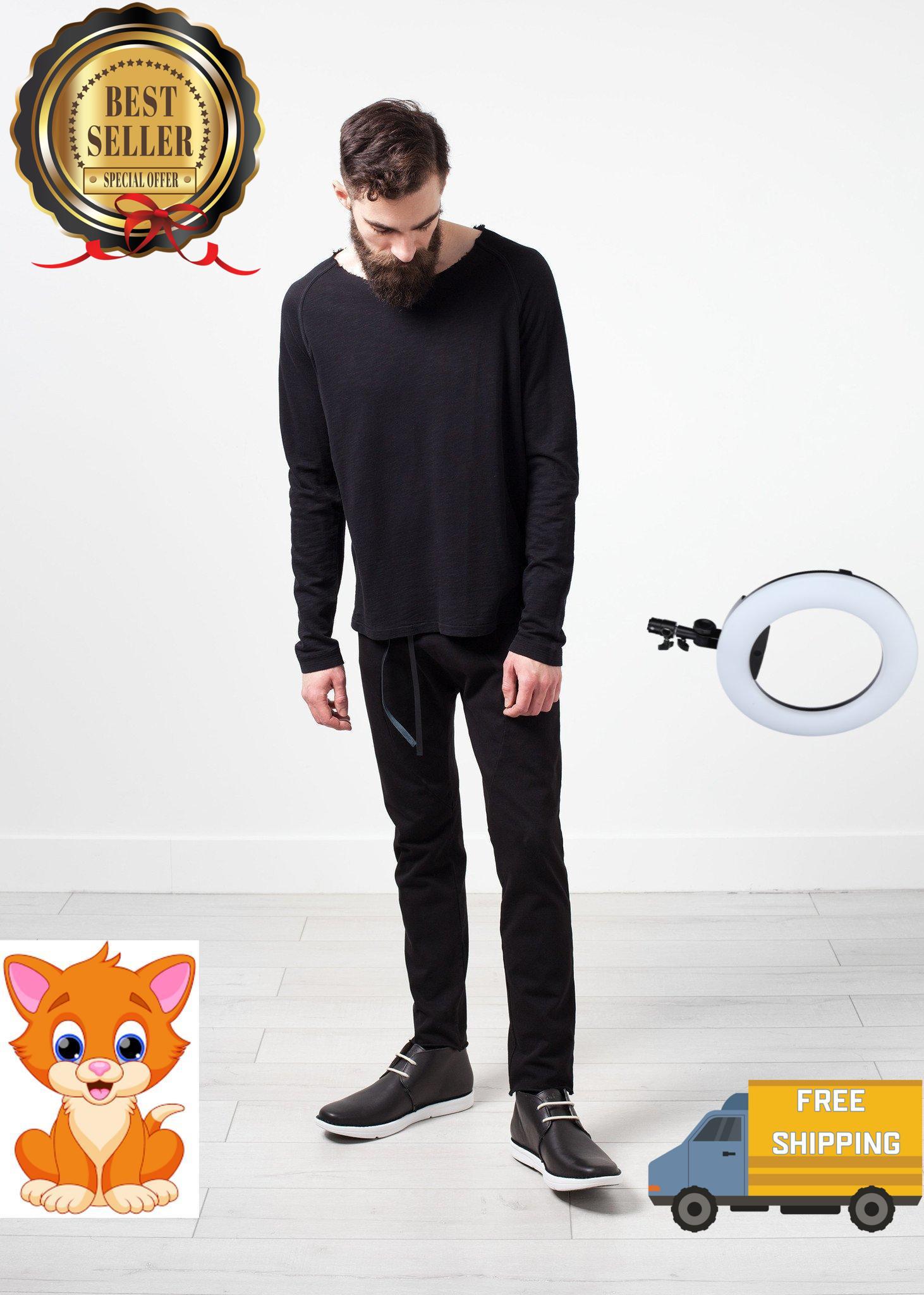 Understated yet classic, Roether’s pieces offer versatility through timeless silhouette. The Daris Tee presents raw refinery. Raglan sleeves and unfinished crew neckline. Color Black. 100% Cotton. Made in EU. Addis is wearing a Large,
