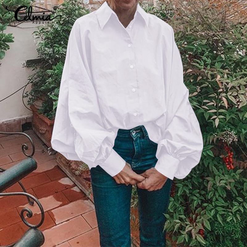 Elegant Office Work Blouse Women 2020 Celmia Plus Size Solid Tunic Top Casual Loose Shirt Ladies Long Sleeve Knotted Blusas 5XL