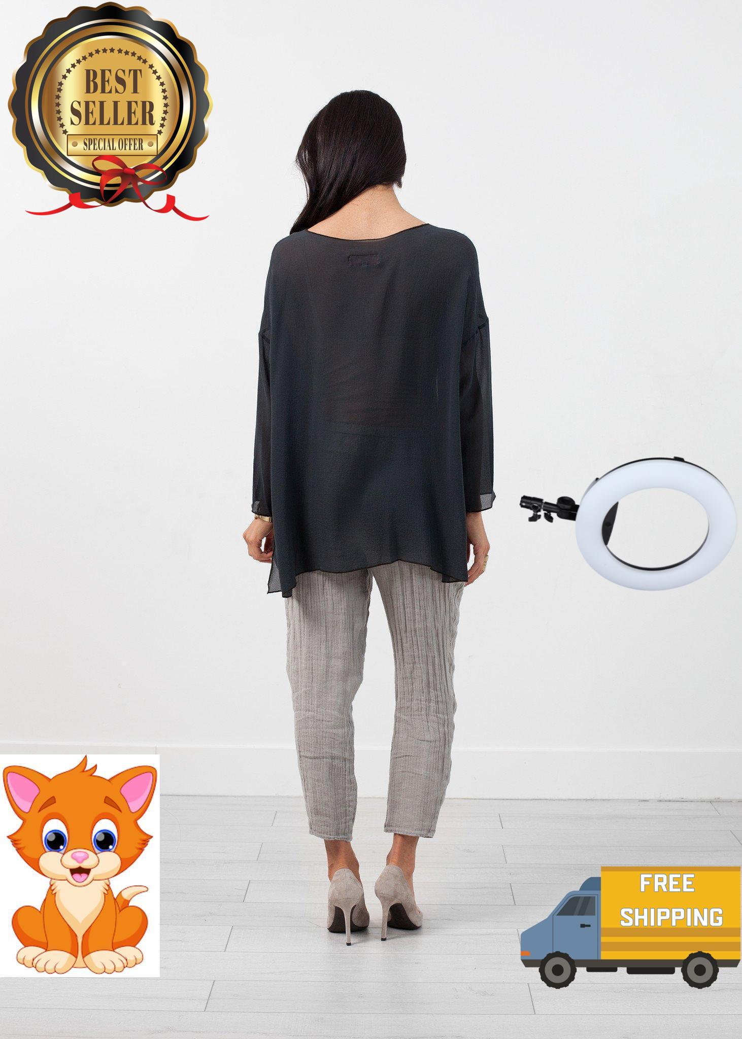 The Hamlet is a cozy pant with intentional wrinkling. Perfected beachwear for a seasonless look, these pants offer an elastic waistband for ease. Side angled pockets at front. Trim leg through the ankle. Manuelle Guibal. 100% Linen. Made in France. Ashley is wearing a Size 1.