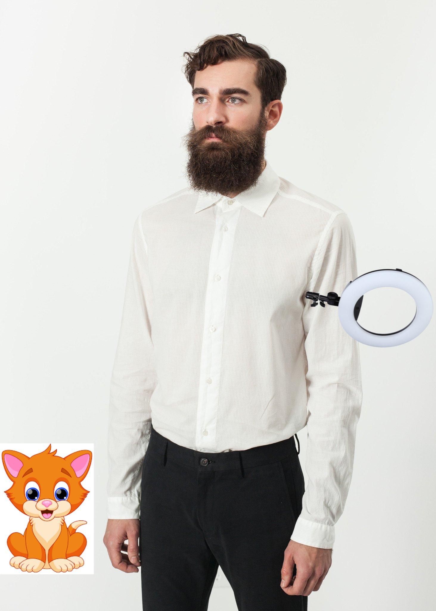 The Hempel Shirt is the all-purpose classic button down. Tailored to fit naturally and immaculately. Front button down placket, clean collar, standard cuff with button closure. Woven stripe detail. Hannes Roether. Color White. 100% Cotton. Made in Romania. Addis is wearing a size Medium. Addis is 6’2”, Chest 38.5”, Waist 31”, Inseam 32”.