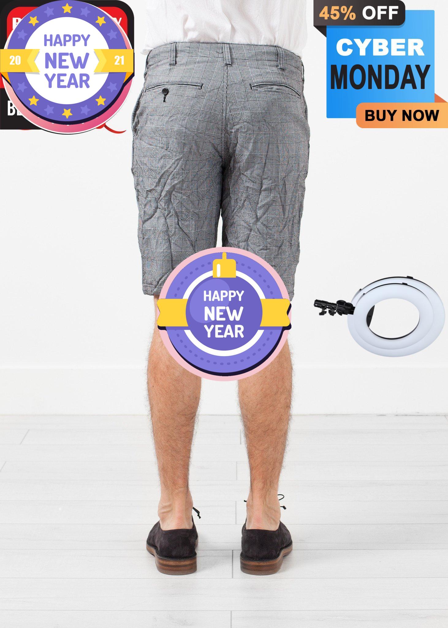 The Check Short from Sage de Cret offers an engaging texture with comfort stretch. Hook and eye closure with zip fly. Four exterior pockets. Lining. Color Black/White. 56% Wool, 44% Polyester, Lining 100% Polyester. Made in Japan. Jacob is wearing a Medium.