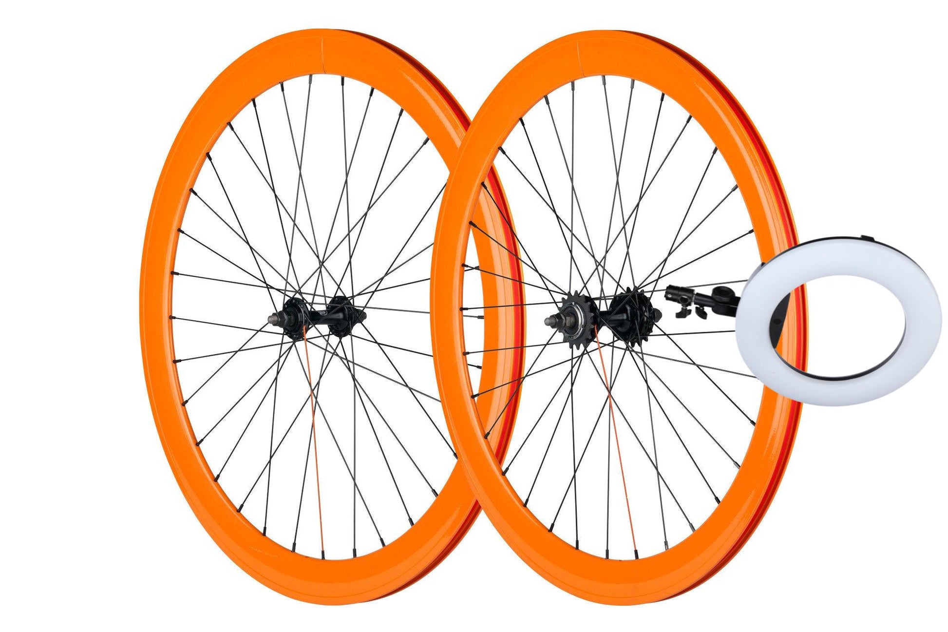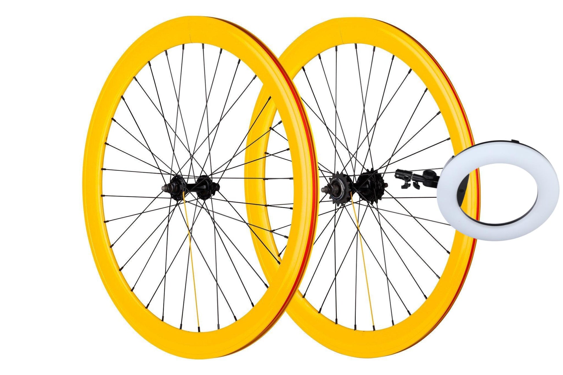 Pure Fix double-walled aluminum wheelsets are size 700C with a 40mm rim depth, front and rear. Our wheels include name-brand and laser-etched KT Quando hubs (100mm front, 120mm rear, 3/8" axle). Our rear wheels include flip-flop hubs with a pre-attached 16T fixed cog along with a 16T freewheel cog for single-speed riding. Our front and rear wheels are 32 spokes each. All wheelsets include nylon rim-strips to protect against sharp edges and prevent tube puncture.