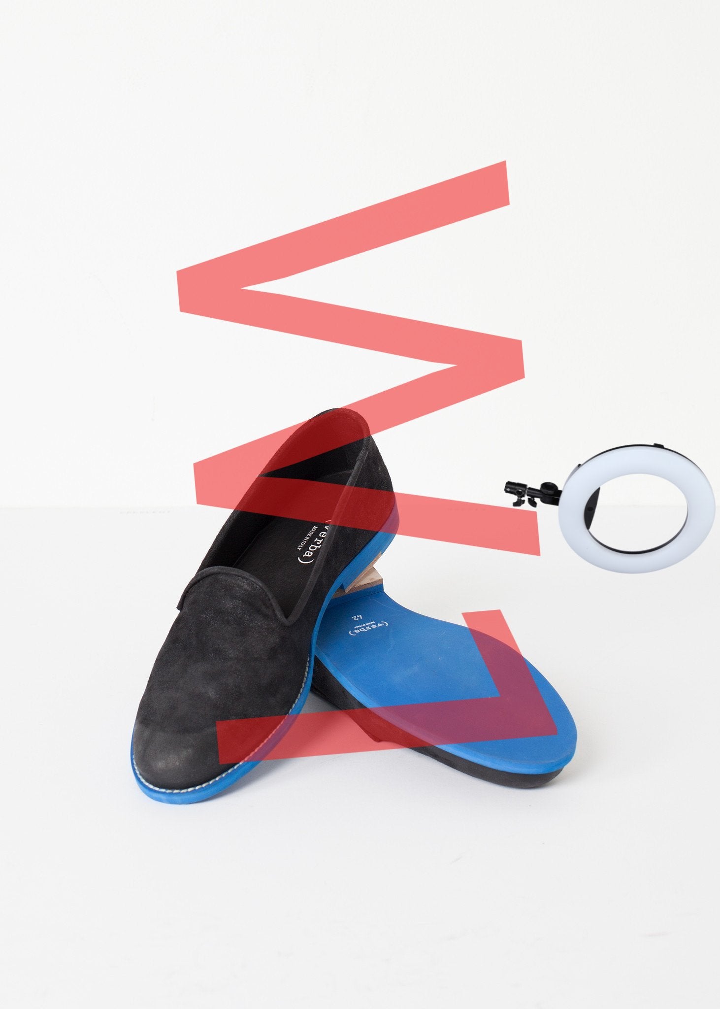 Suede loafer with a neon sole. An individualized twist on an age-old classic. Verba. Color Black/Blue. 100% Suede Leather, Waterproof Synthetic Sole. Made in Italy.