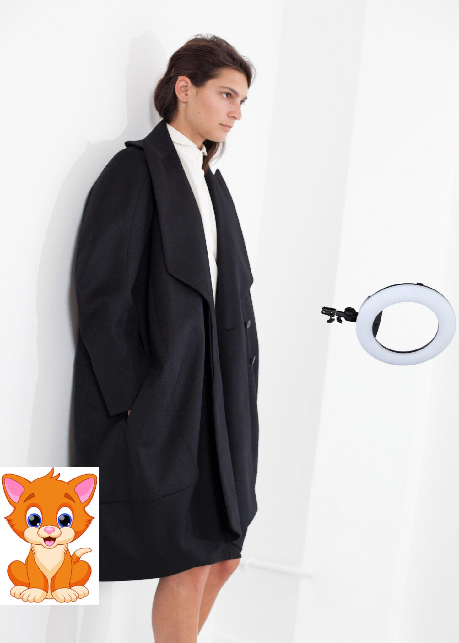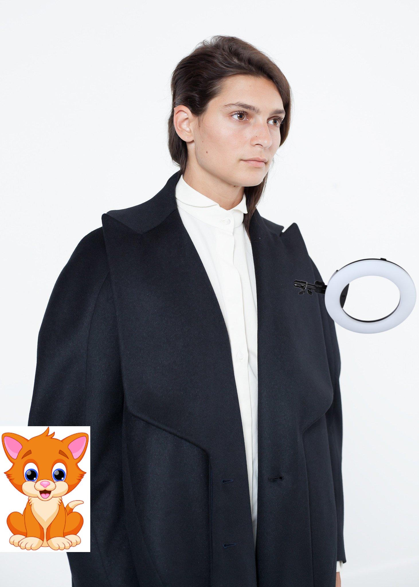 The oversized cocoon shape of this weighty and elegant coat is polish personified with crisp-notched lapels and generous sleeves. Finished with a concealed two-button closure and slit pockets that fall at the waist. Gianfranco Scotti. Color Black. 100% Shahmina wool, Lining 100% Silk.