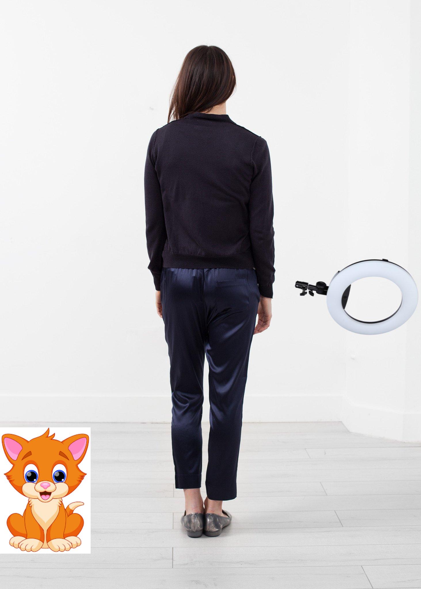 The Shrunken Cardigan is a cozy spring selection with simple caresses of silk. Lars Andersson. Color Shale. 60% Silk, 40% Cotton. Made in Nepal. Lana is wearing a Small.