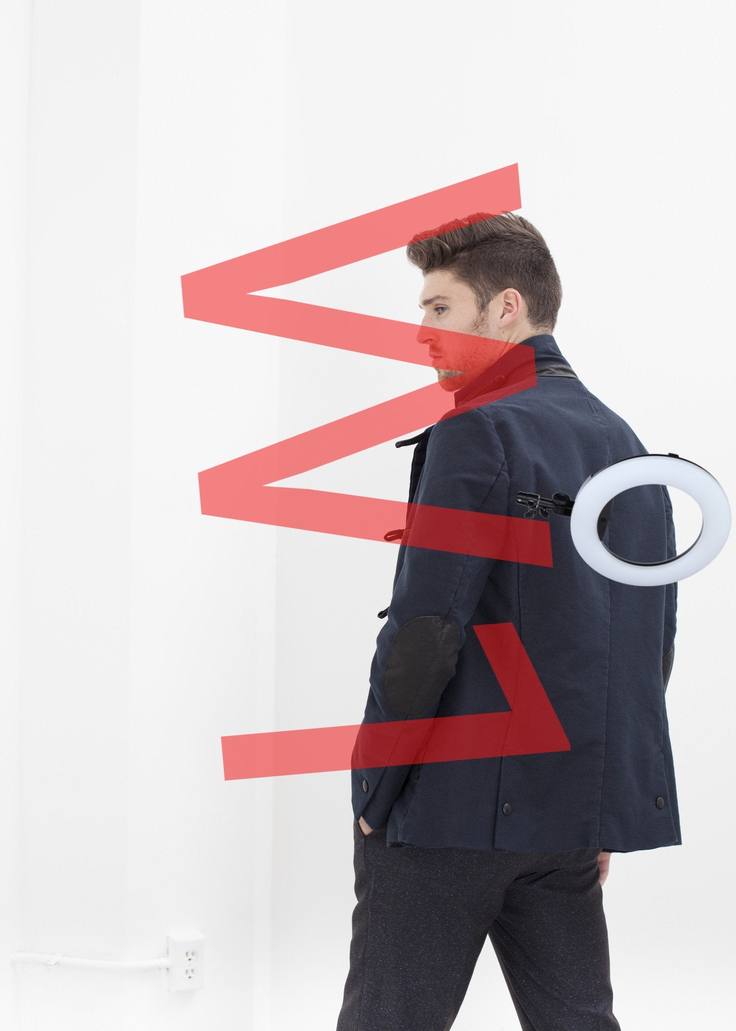A sheath of durable cotton fabric, the Taurin Jacket is worked into a military look with two front pockets in the side seams and a welted chest pocket. Leather detailing at pockets and collar, and leather buttons and loops to close. Rounding out the look is leather elbow patches. Double vented back hem secured with leather buttons. Hannes Roether. Color Navy. 100% Cotton, 100% Lamb Leather. Spencer is wearing a size Large.