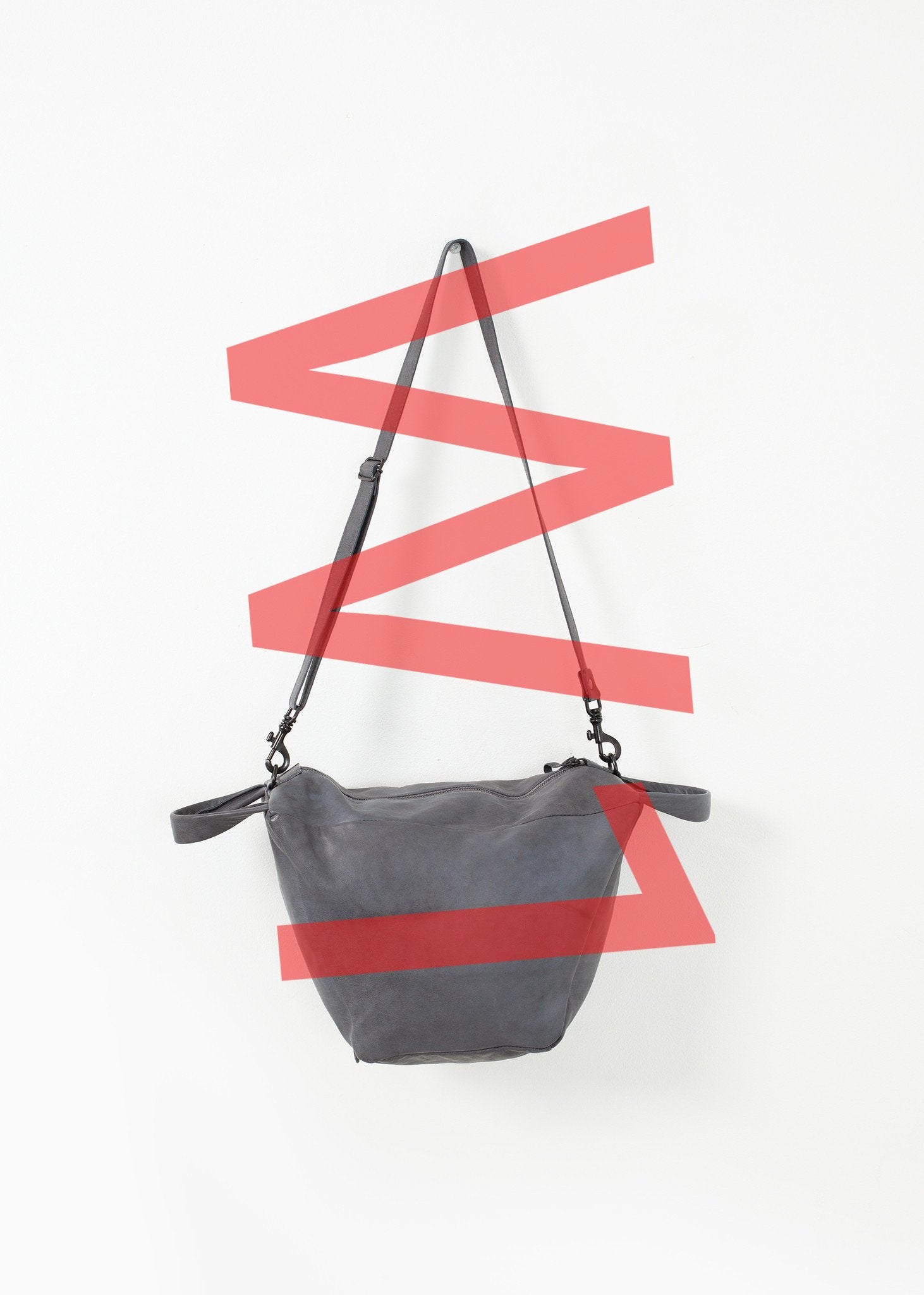 Calf skin leather bag with two handles that can be carried as a tote, worn over the shoulder, or cross-body. Detachable and adjustable shoulder strap, black hardware, and with zip closure. Fully lined in linen with a zip inner pocket. Marsell. Color Lead. 100% Leather, 100% Linen Lining. Made in Italy.