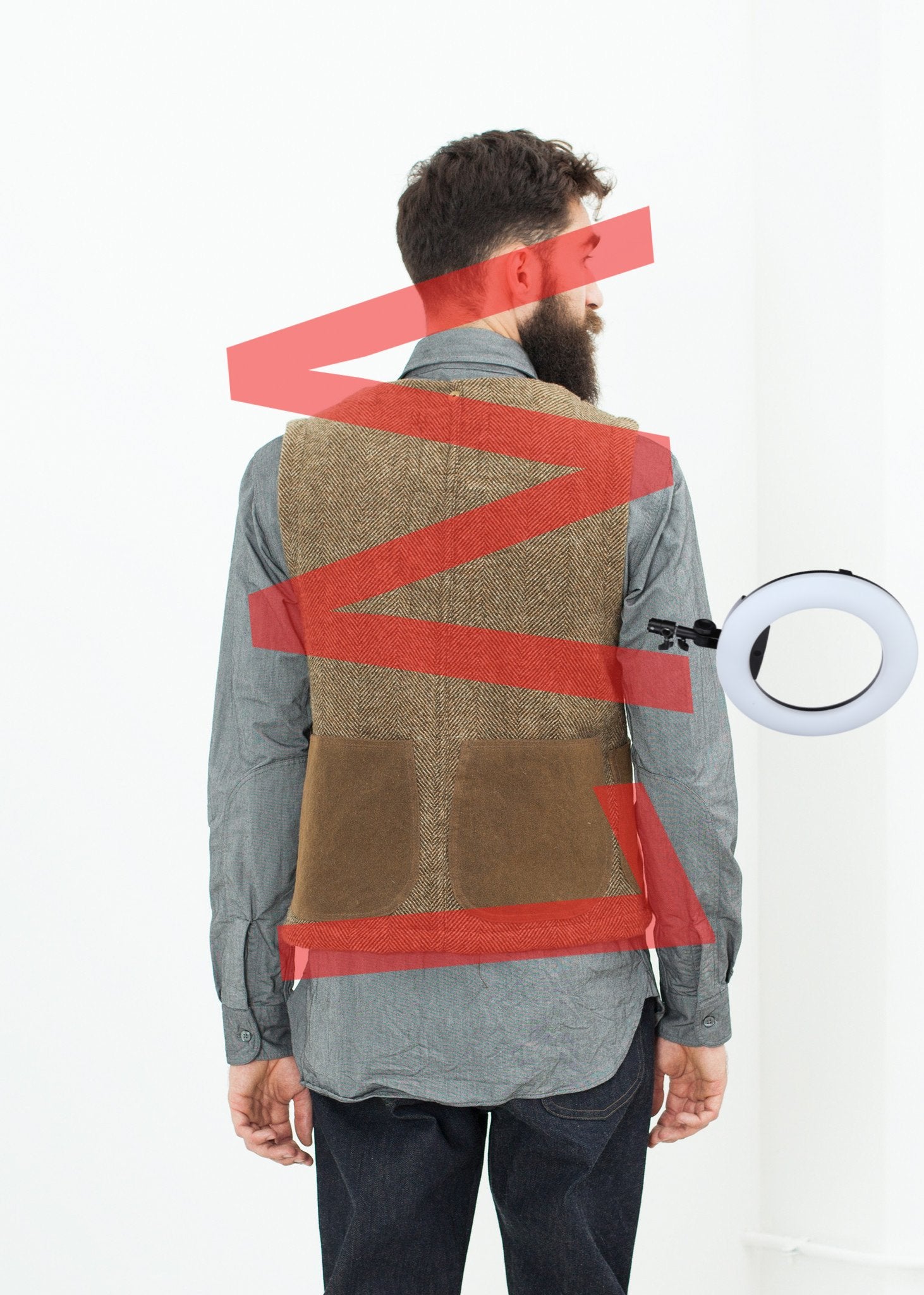 A herringbone tweed in a winter-weight wool the rugged Work Vest from Nigel Cabourn can be worn underneath the Aircraft jacket or alone. If worn with the Aircraft Jacket it will snap in at center front as a liner. Either way it's worn it will find years of use with the reinforced snaps and waxed cotton pockets. Two patch pockets in front and two in back. Color Tan. 100% Wool, 100% Cotton. Addis is wearing an Italian 50. Addis is 6’2”, Chest 38.5”, Waist 31”, Inseam 32”.