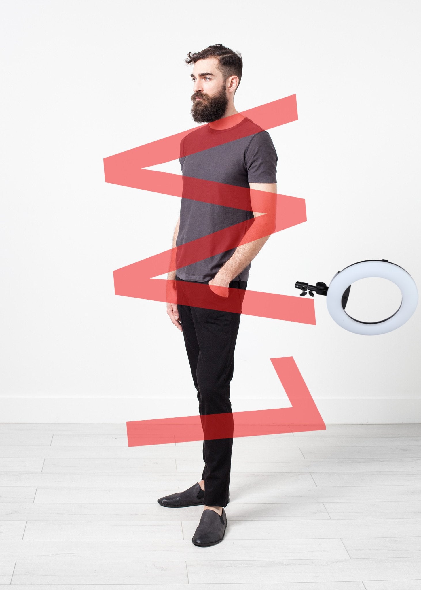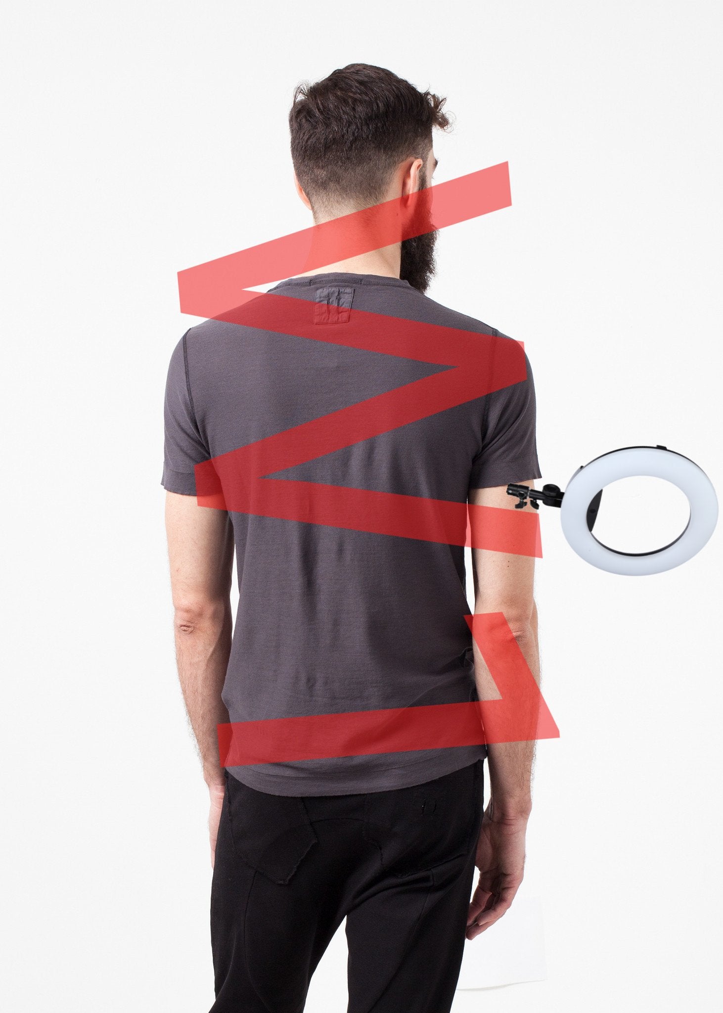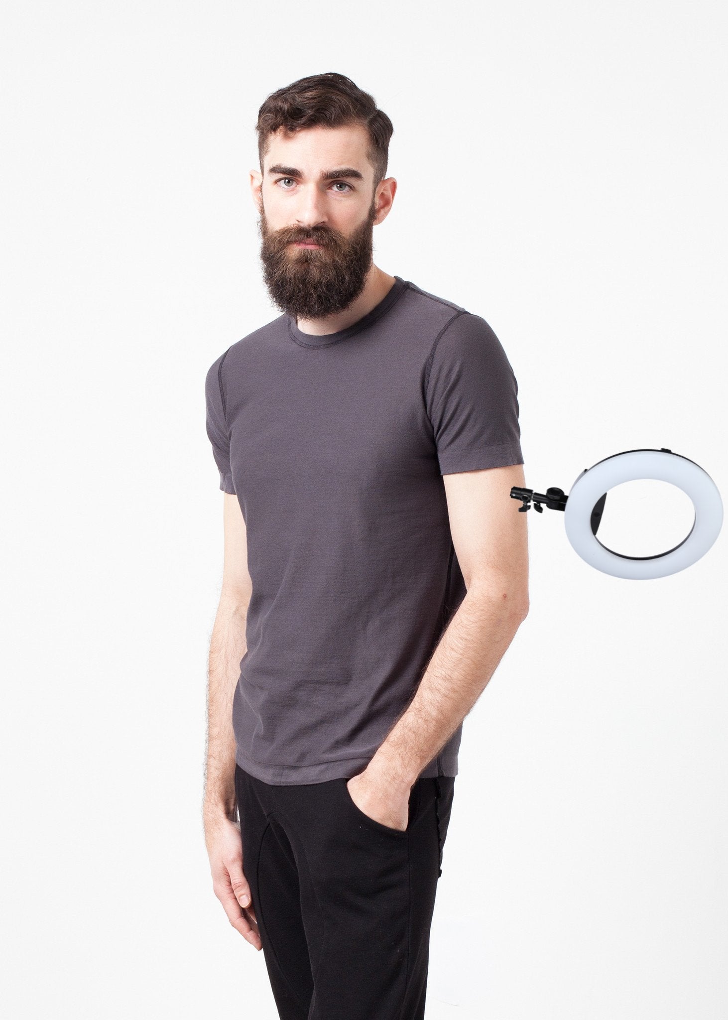 Classic T-shirt with undeniable comfort for impeccable style. Crew neckline. Hannes Roether. Color Phantom. 100% Cotton. Made in Portugal. Addis is wearing a Small.