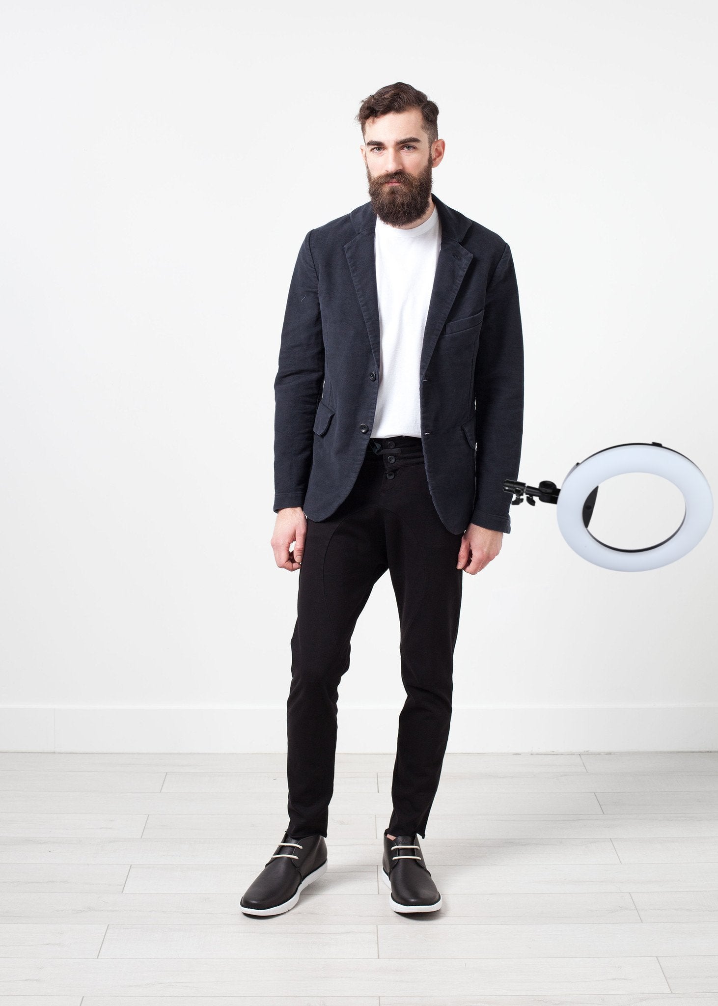 The Zepo Blazer is uniquely textured while remaining inherently classic. Attractive tailoring only increases its appeal. Lined throughout. Hannes Roether. Color Phantom. 100% Cotton. Made in Czech Republic. Addis is wearing a Small.