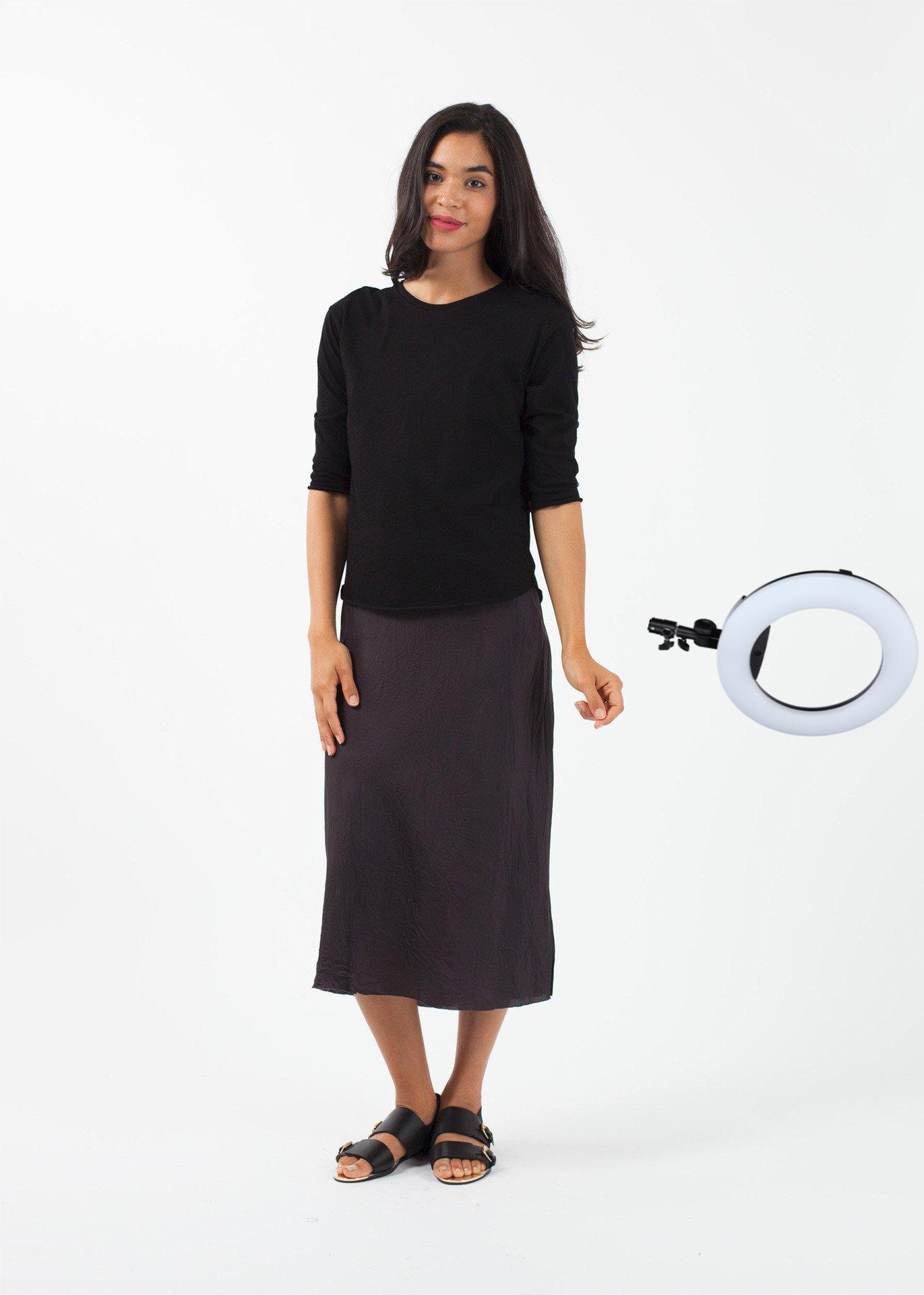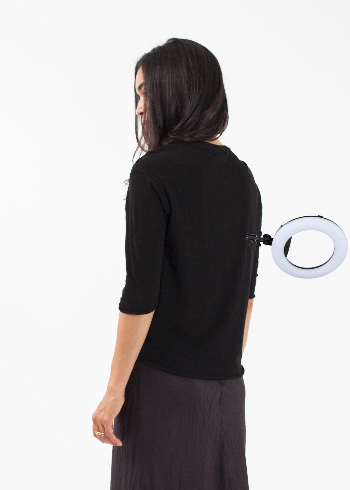 Pirouette into summer. The Ballet Top from Organic by John Patrick is highly versatile in a dreamy cotton. 3/4 inch sleeves. Raw hemming. 100% Organic Cotton. Made in Peru. Ashley is wearing an X-Small.