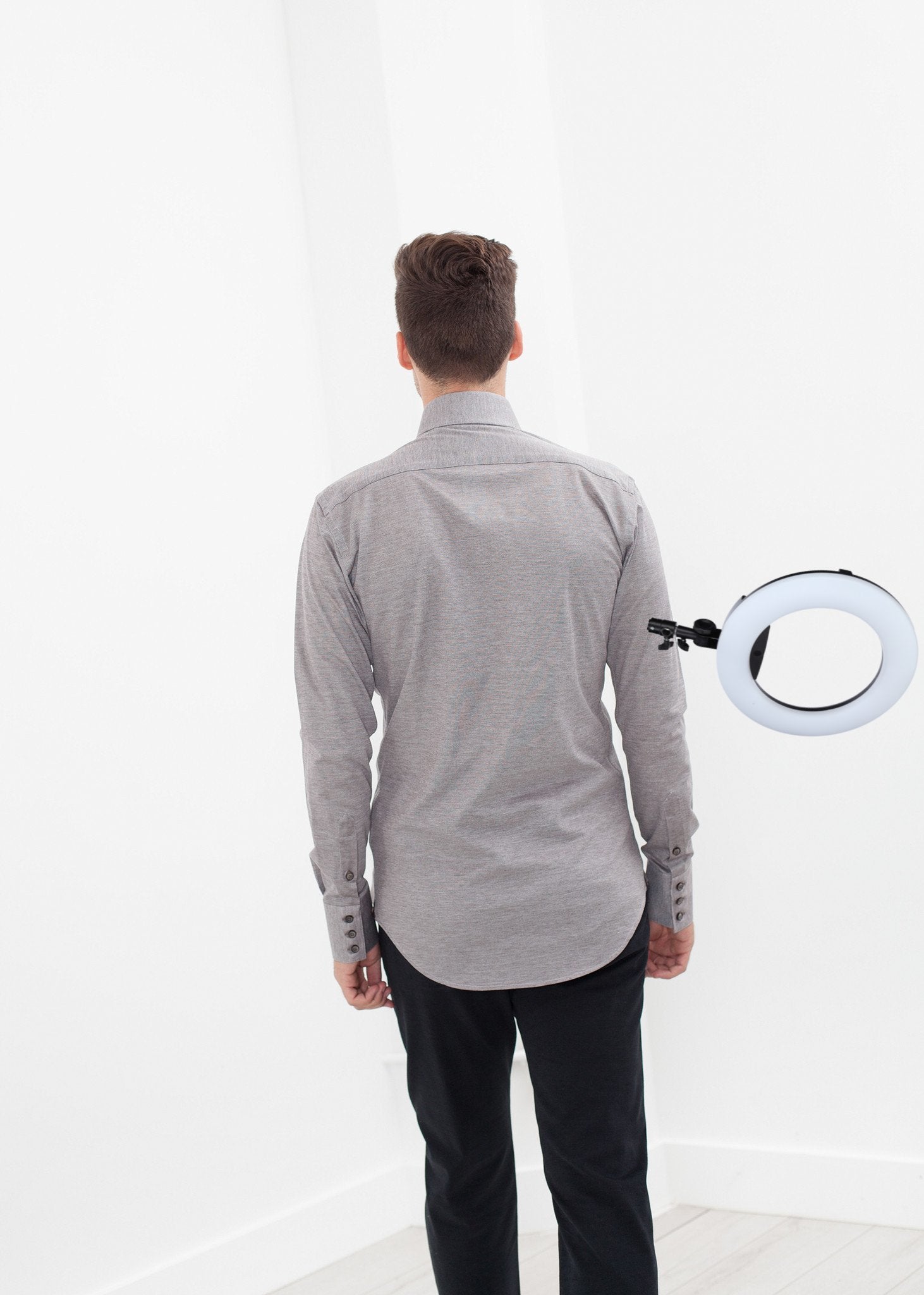 A brown pique weave defines a soft dress shirt by Circle Of Gentlemen. This shirt has a slim fit and features long sleeve with triple button barrel cuffs and a back yoke. Color Brown. 100% Cotton. Spencer is wearing a size 39.