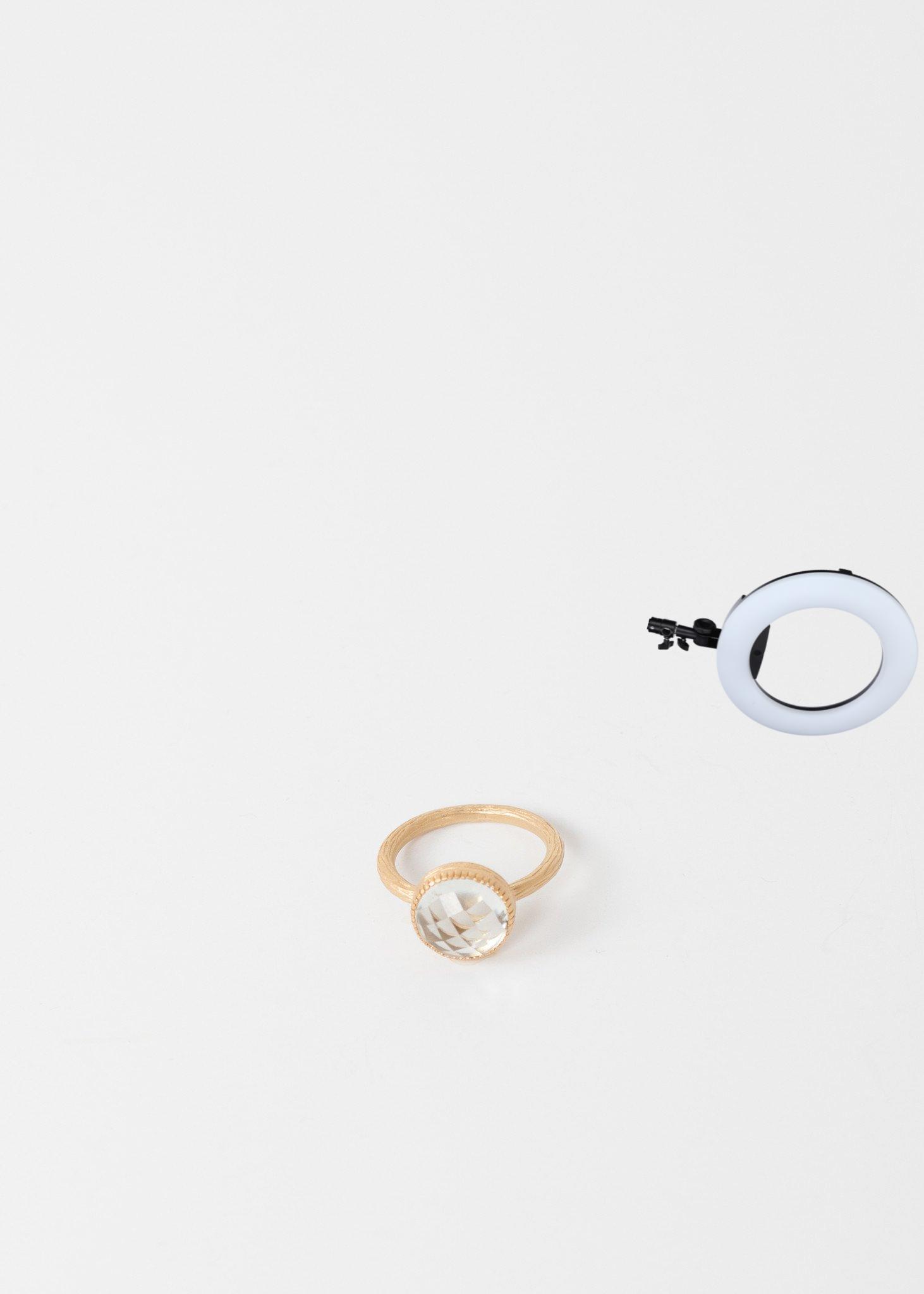 Quintessential elegance with delicate details. Texture ring base emphasizes the statement stone. 5 Octobre. Color Clear Amethyst and Gold. Made in France.