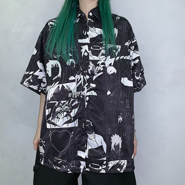 Anime Naruto Manga Print Summer Women Button Up Shirt Short Sleeve Harajuku Streetwear Clothes Blouse Graphic Cardigan