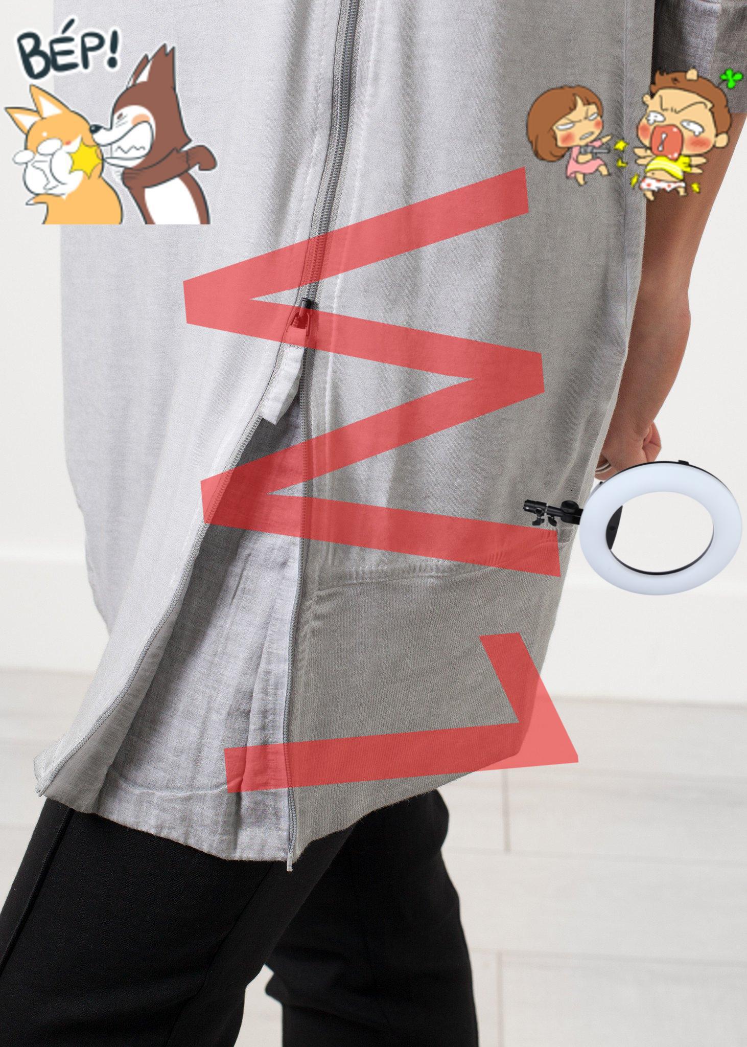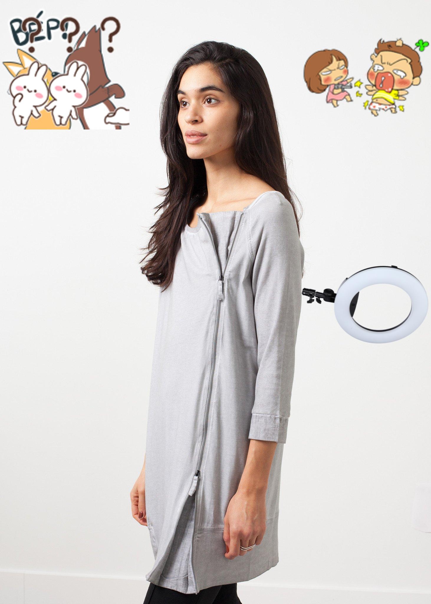 The Berry by Annette Gortz is part tunic, part knit top. 3/4 inch sleeves. Boat neckline. Side double zip at left front. Color Smoke. 92% Cotton, 8% Spandex, Trim 100% Cotton. Made in Germany. Ashley is wearing a Small.