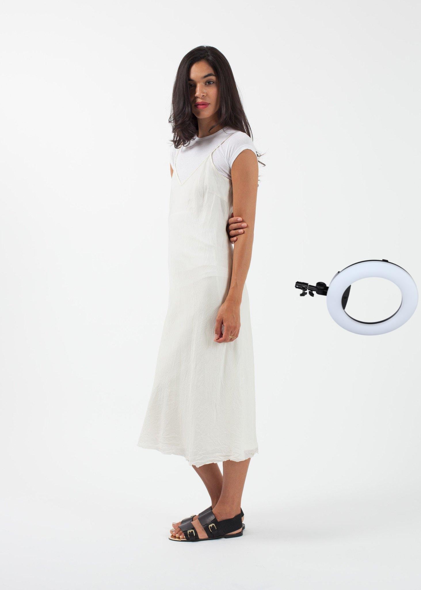 The Bias Slip Dress from Organic by John Patrick invites dreamy summer moments. Bohemian in look offers a trancelike sense. Sourced from biodegradable cotton. Adjustable straps. Raw hemming. 100% Cupro. Made in U.S.A. Ashley is wearing an X-Small.