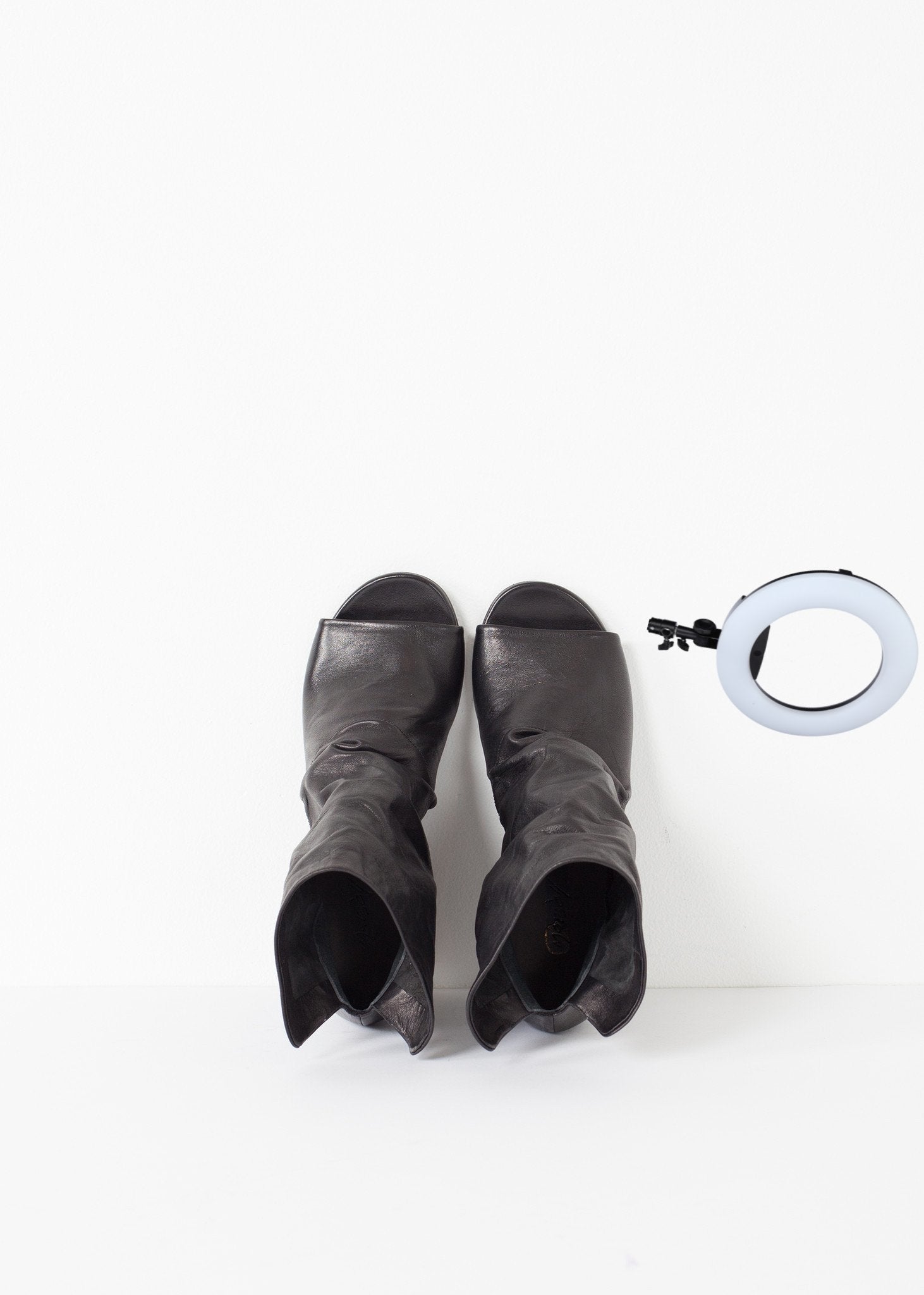 Married aesthetics of innovation and tradition, Marséll crafts shoes of mastering technique. Where modern classism takes wearable shape, anticipate artistic expression epitomized in leather footwear. The gorgeous Block Wedge at its' essence is seasonless and versatile. With the perfect pedicure or favorite tights, these wedges will take you places. Color Black. 100% Leather. Made in Italy.