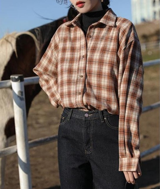 Blouse Women Woolen Plaid Coat Plaid Shirt for Women Thickened Long Sleeve Top Shirt Blusas Ropa De Mujer
