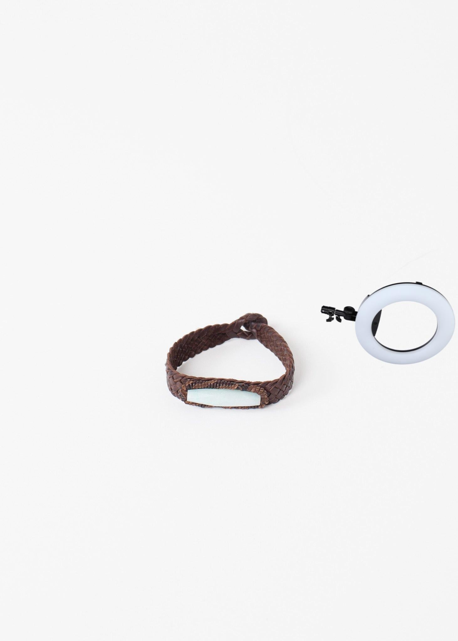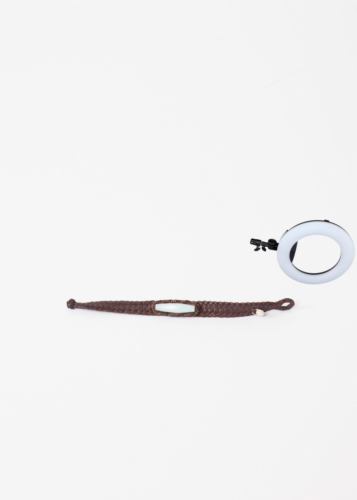 Kalosoma Jewelry demonstrates the rigorous beauty in the handmade. Statement Calcedony stone braided into delectable leather band. Scarab detail. Knotted closure. Color Brown. 100% Leather. Made in Mexico. Length 7 Inches.