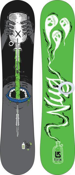 - KEY FEATURE: A top ten Backyard board graphic contest finisher from last season, Pierre Llamas applies a dark vision to his twisted pen and ink illustrations. His ghostly apparitions of bootlegged booze worked like black magic for the Nug’s off-kilter personality.