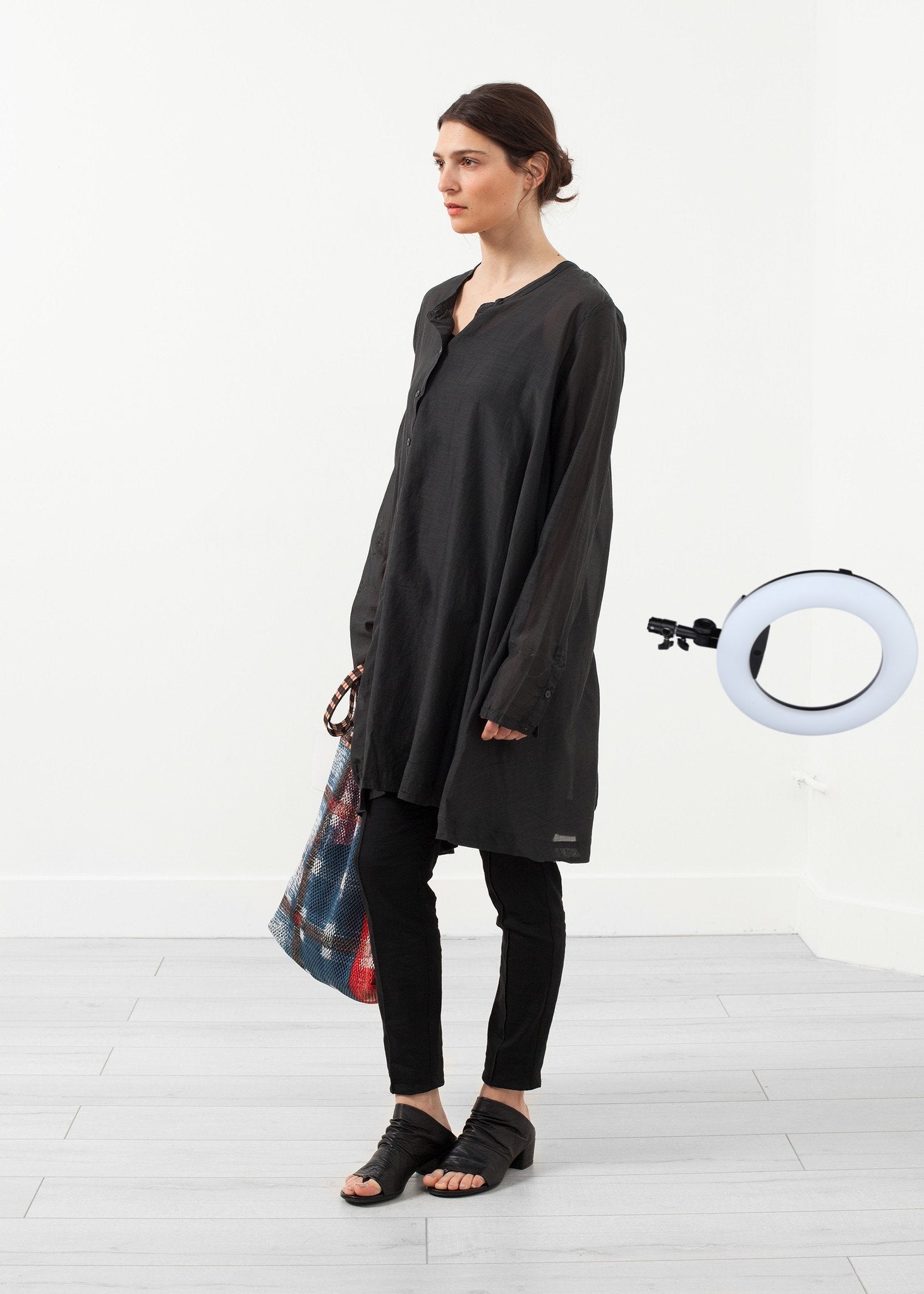 The Rundholz Black Label collection emphasizes accessibility in fashion. The Button Dress offers versatility in wear as a dress or layering top. Asymmetrical button placket at front. Accent ribbing at hem. Color Tang. 60% Cupro, 40% Cotton, 2nd Fabric 100% Cotton. Lana is wearing an X-Small.