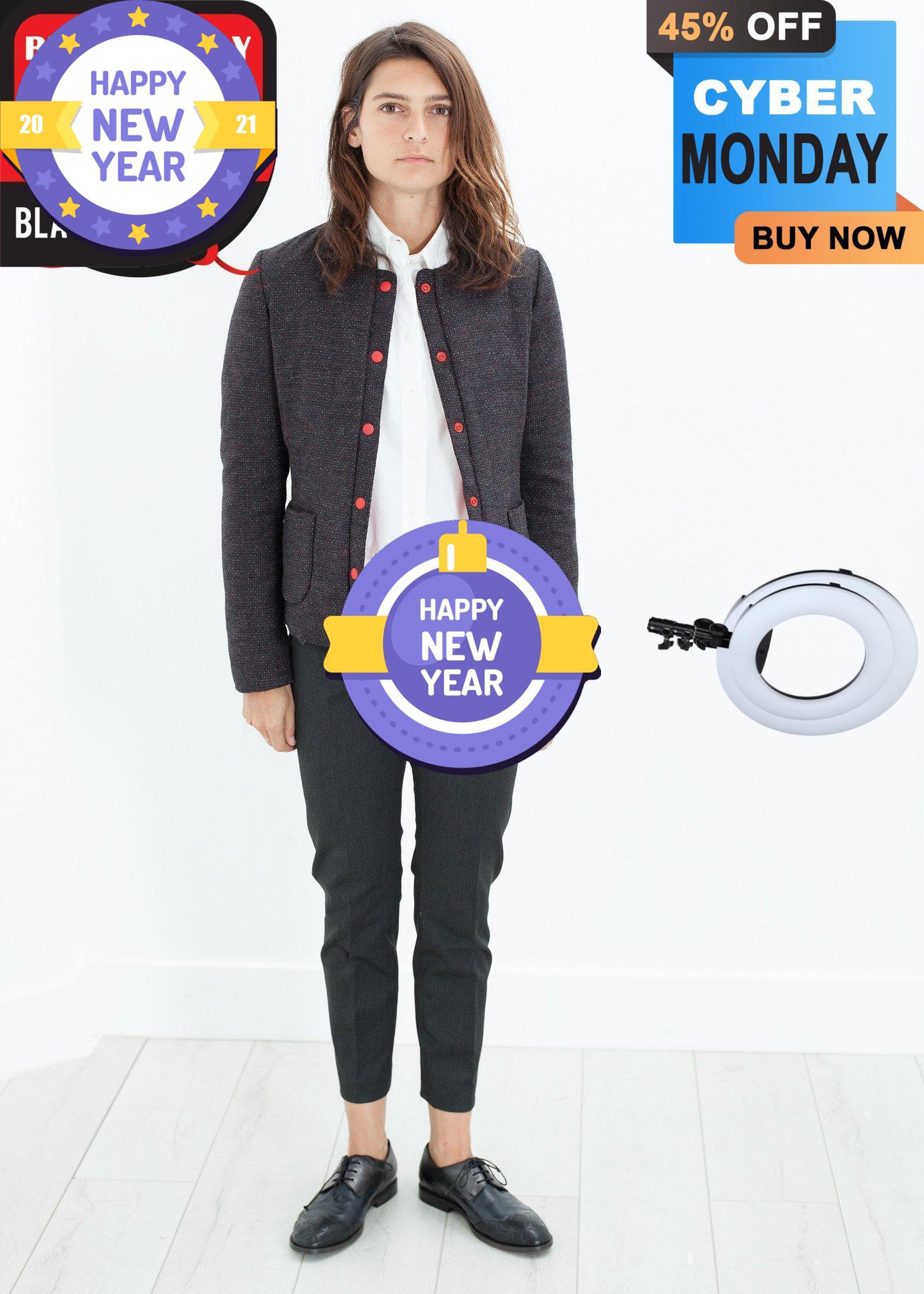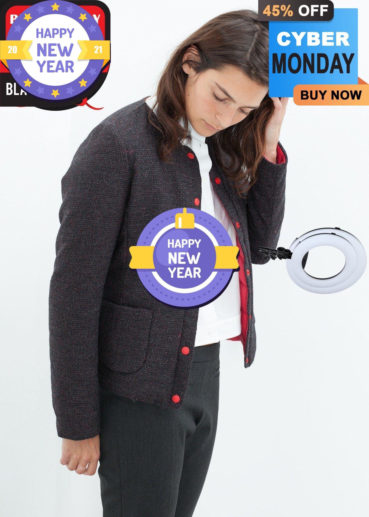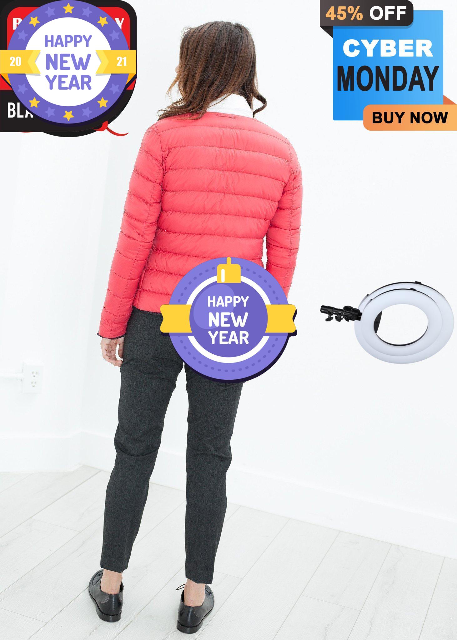 Truly versatile jacket of woven, tweed exterior, and ideal down ratio interior. Ready for one's diverse life schedule, this jacket offers the comfort, practicality, and look of the working women. Color Black/Red. Exterior 95% Wool, 5% Nylon, Lining 100% Nylon, Fill 90% Down, 10% Feather. Made in Italy. Lana is wearing an Italian 40.
