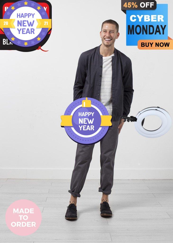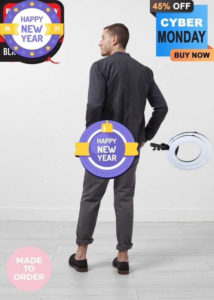 The Carsten Gab Shirt offers a bomber fit and acts as a light jacket. Side angled pockets at front. Hidden button closure at front. Mandarin Collar. Homecore. Color Antra. 100% Cotton. Made in Portugal. Matt is wearing a Large. Matt is 6’2”, Chest 38”, Waist 31”, Inseam 34.5”.