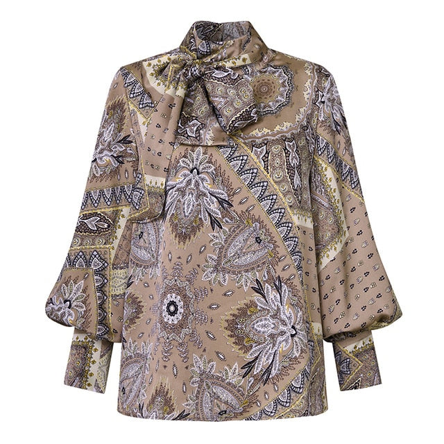 Celmia Plus Size Women Satin Blouse 2020 Fashion Tunic Top Elegant OL Bow Tie Neck Lantern Sleeve Office Shirt Casual Blusas 5XL