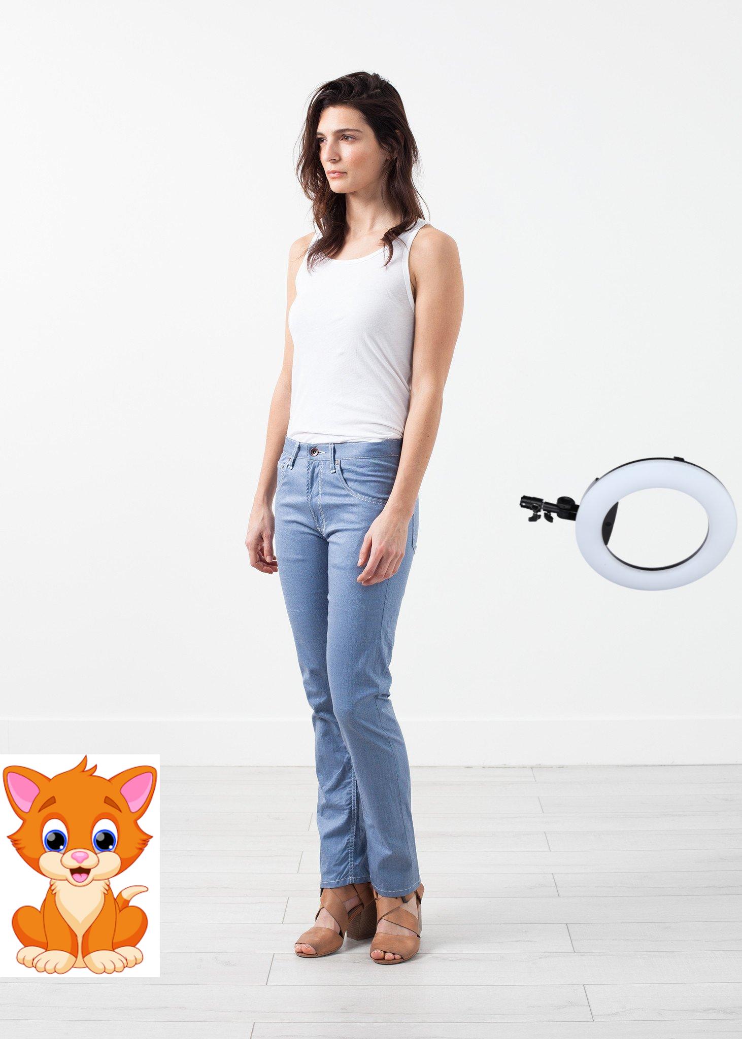 The Coinpocket Pant from Nicholson & Nicholson is lightweight with a classic, straight-leg silhouette. Five exterior pockets with contrasting garnets. Single button closure with zip fly at front. Color Sax. 97% Cotton, 3% Polyurethane. Made in Japan. Lana is wearing a French 36.