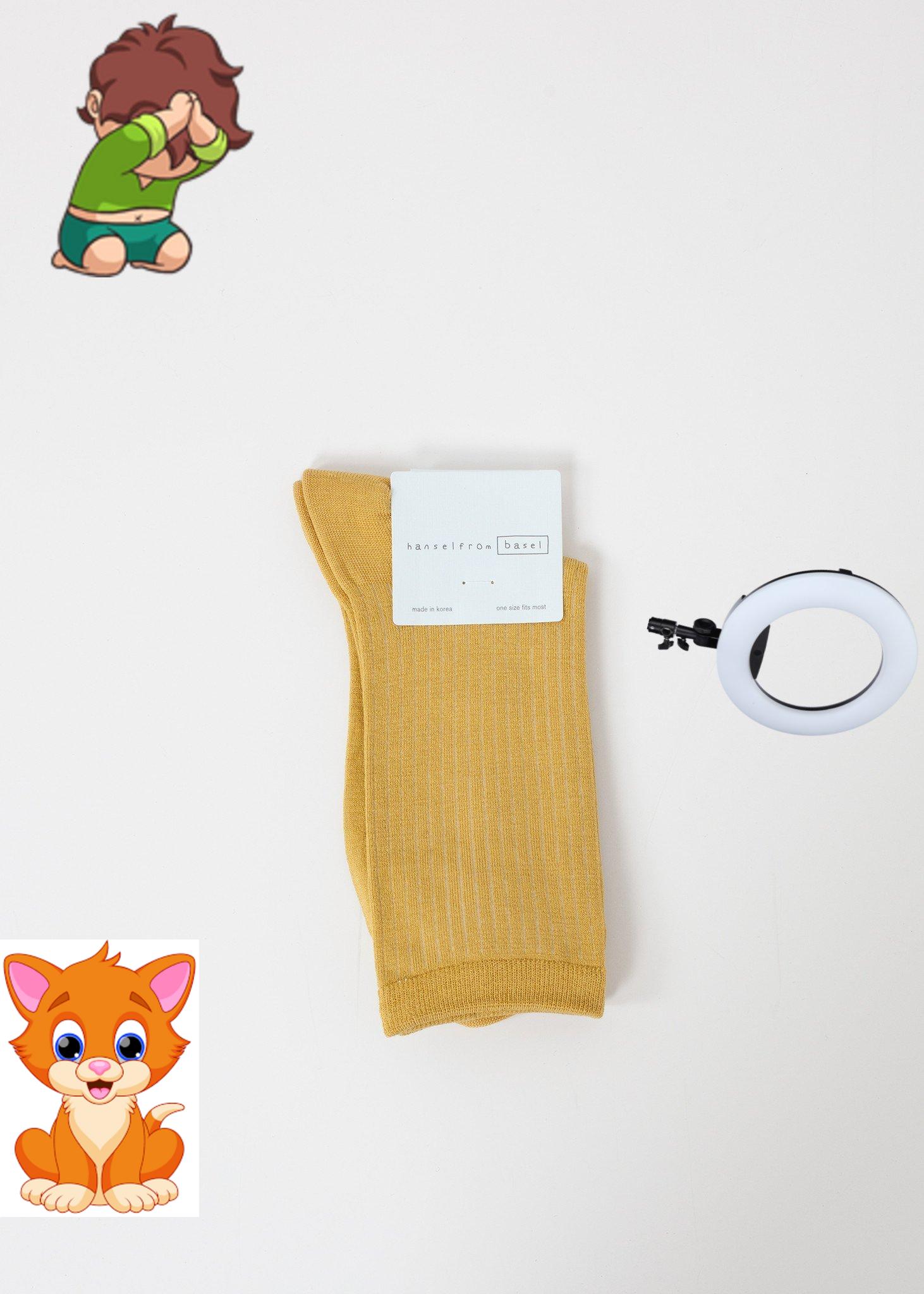 Los Angeles label Hansel from Basel invites fun and joy into the realm of accessories. This season's sock collection is a whimsical array of springtime joy, too cute to hide under pants. Say yes to colorful feet for spring! Color Mustard. 61% Silk, 34% Nylon, 5% Spandex. One Size.
