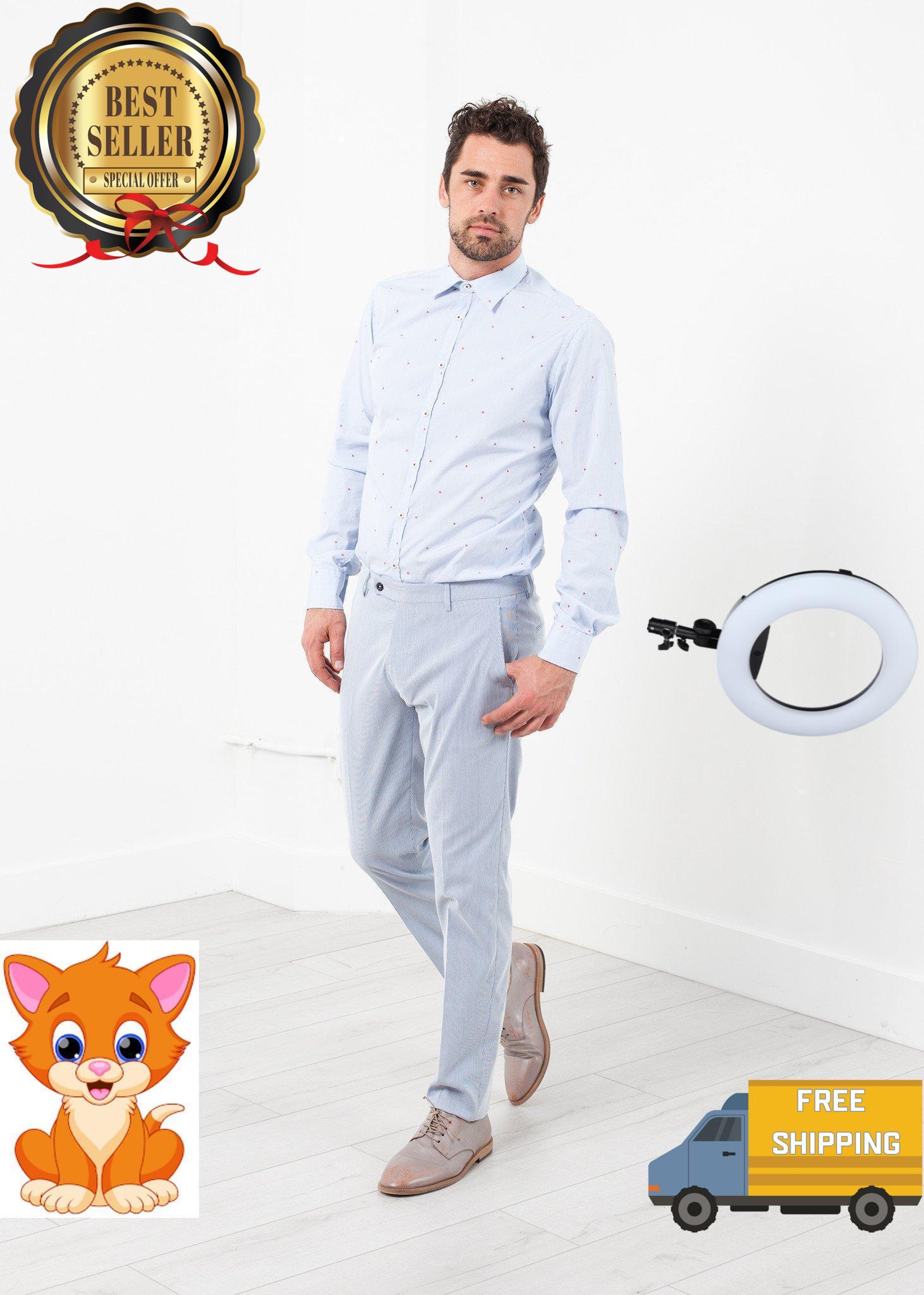 Created from the vast experience of its 41 founding members, this shirt delivers beautiful Italian tailoring and high quality fabrics and trims. The classic button down has back darts for a more tailored fit. Adorned throughout with embroidered, red hornets. Color Blue Hornet. 100% Cotton. Made in Italy. Jacob is wearing a Size 41.