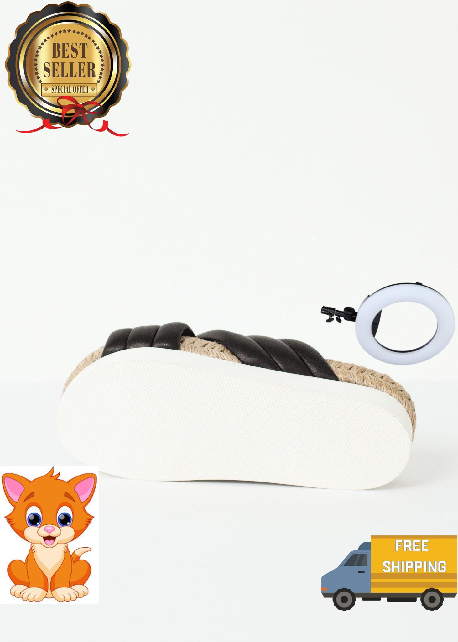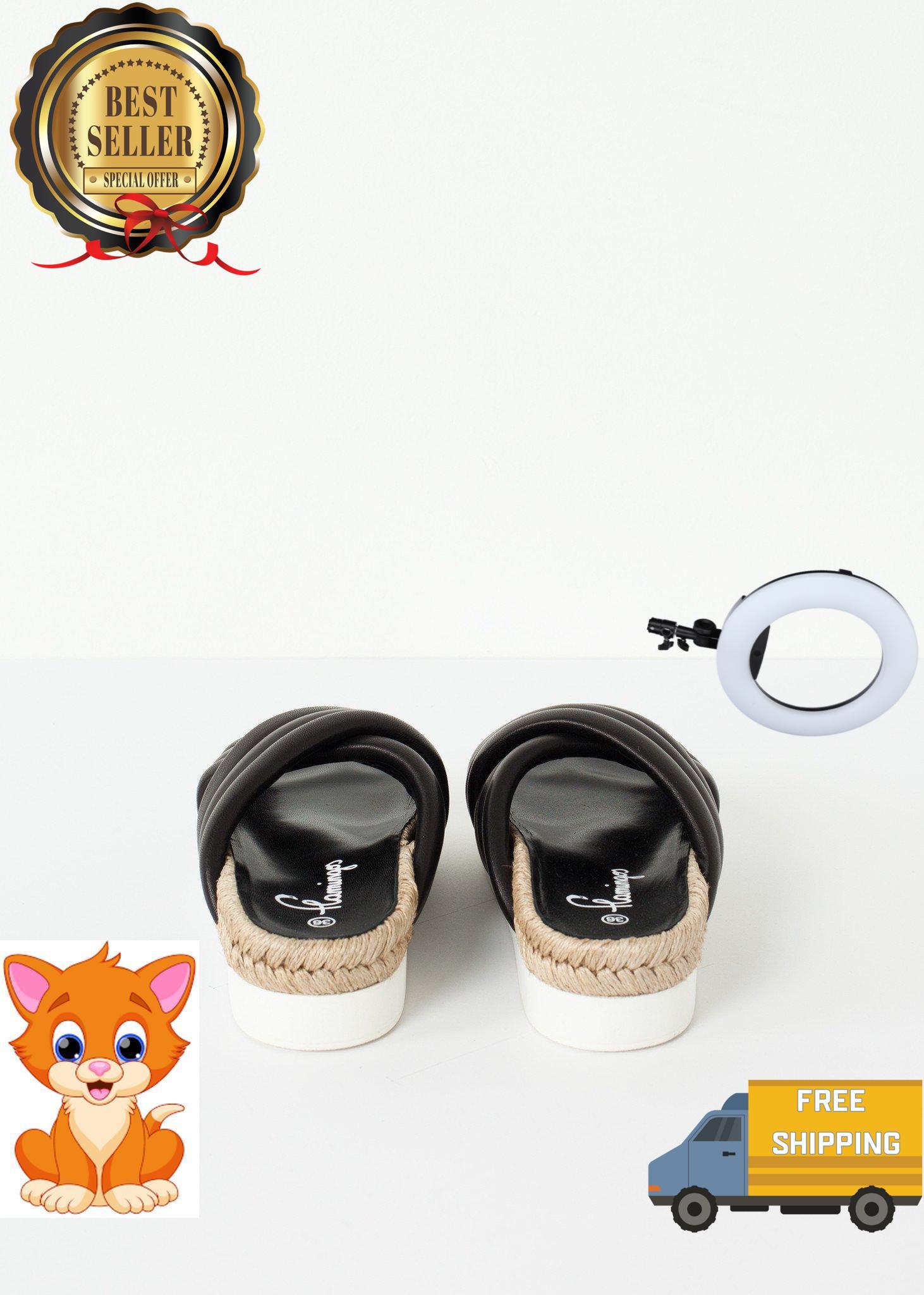 The Delano is a platform piece radiant for some summer sun. Statement straps contrast texture and color of the durable sole. Flamingos. Color Black. 100% Lambskin leather upper, Jute lined, synthetic EVA sole. Made in Spain.
