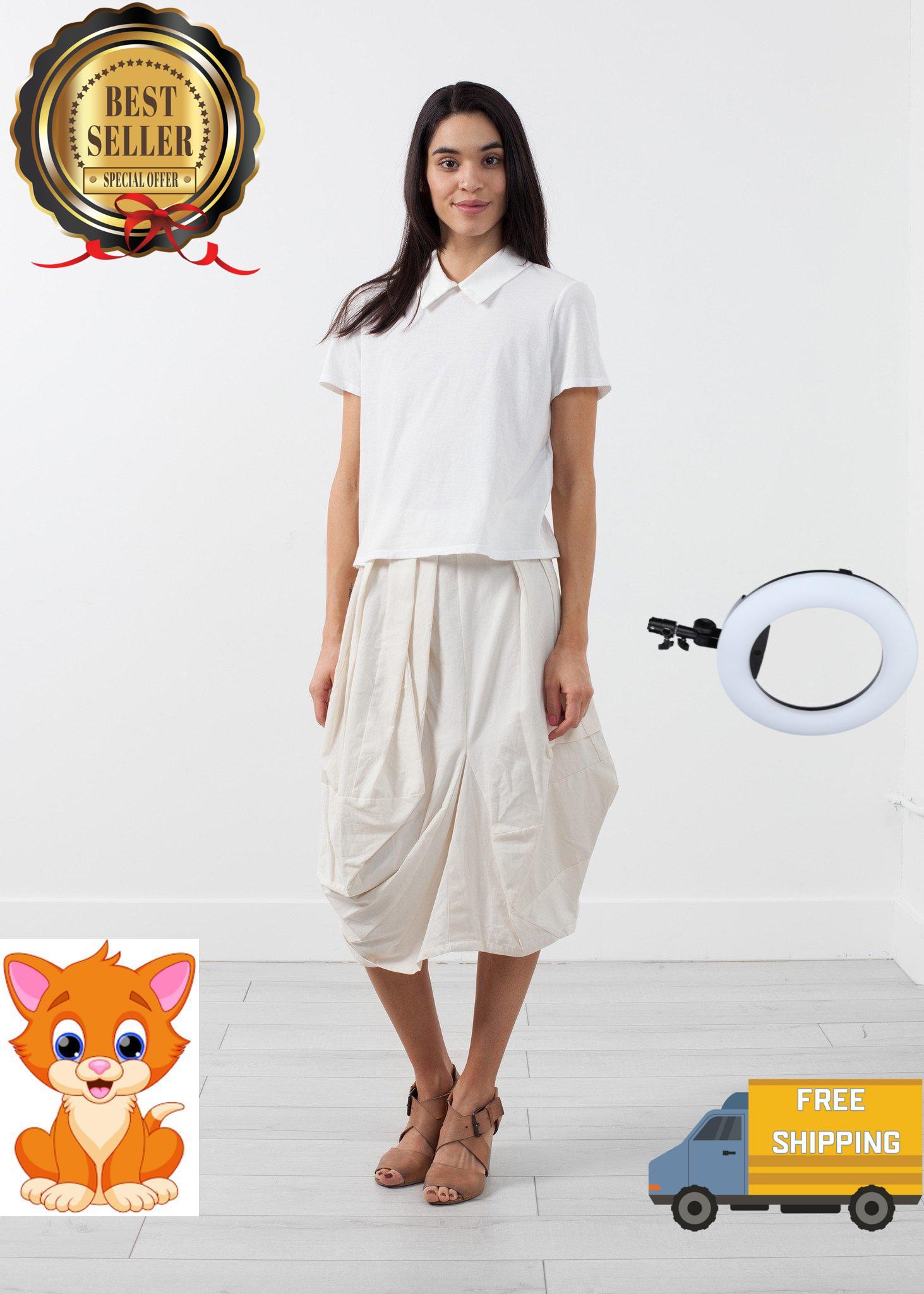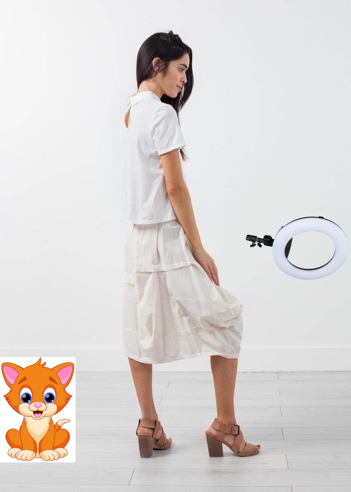 The contrasting collar of the Double Blouse is a memorable statement. Single button closure at center back neck. Hache. Color White. 100% Cotton, 2nd 64% Linen, 34% Cotton, 2% Linen. Made in Italy. Ashley is wearing a Size 40.