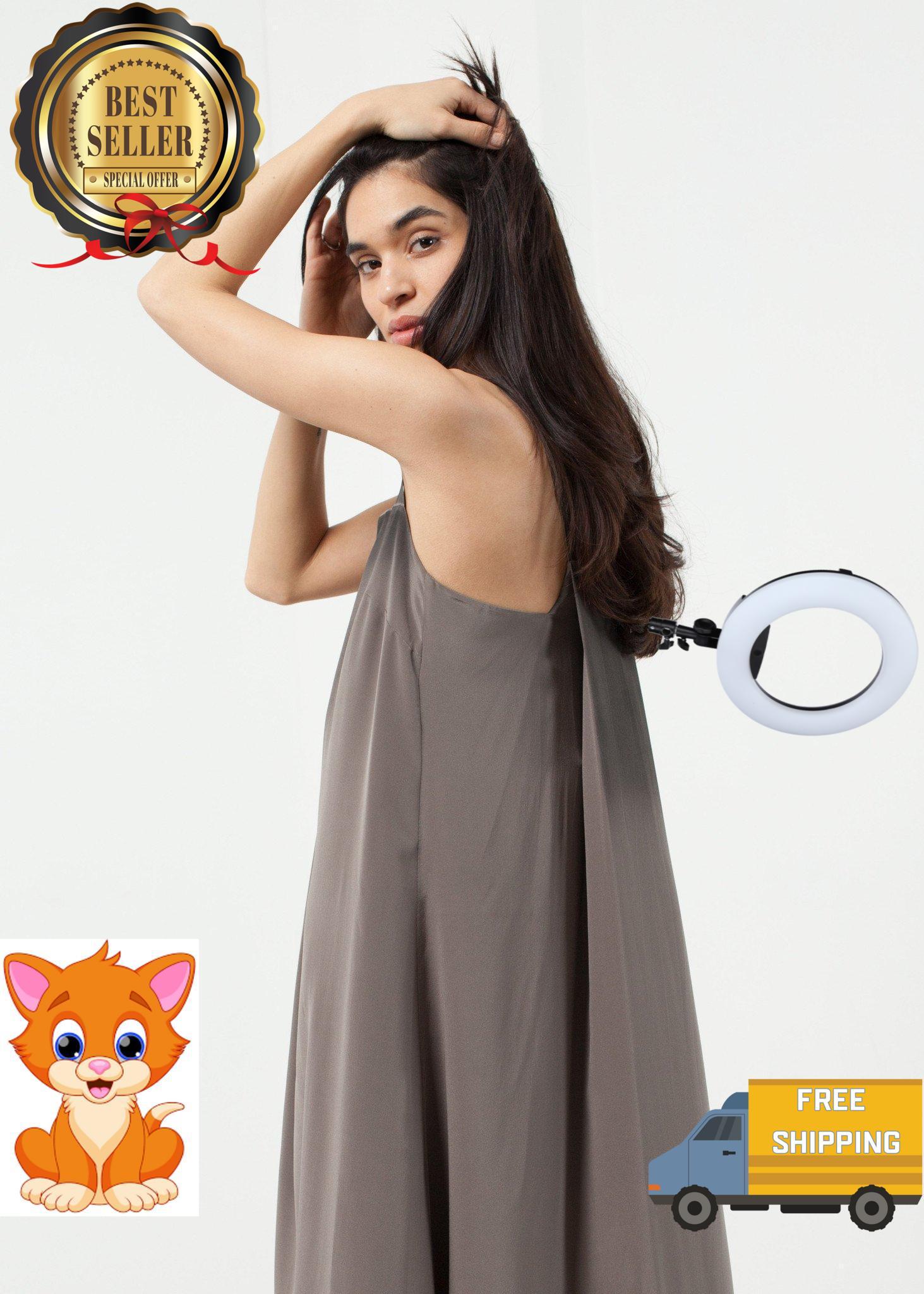 The Edna Dress is no exception. Fabric cut on the true bias delivers an irresistible shine, complimenting the form. Woven silk flows its course as a graceful indulgence. Panels emphasize cascading length. Statement neckline needs no jewelry. Annette Gortz. Color Mud. 100% Silk. Made in the EU. Ashley is wearing a Small.