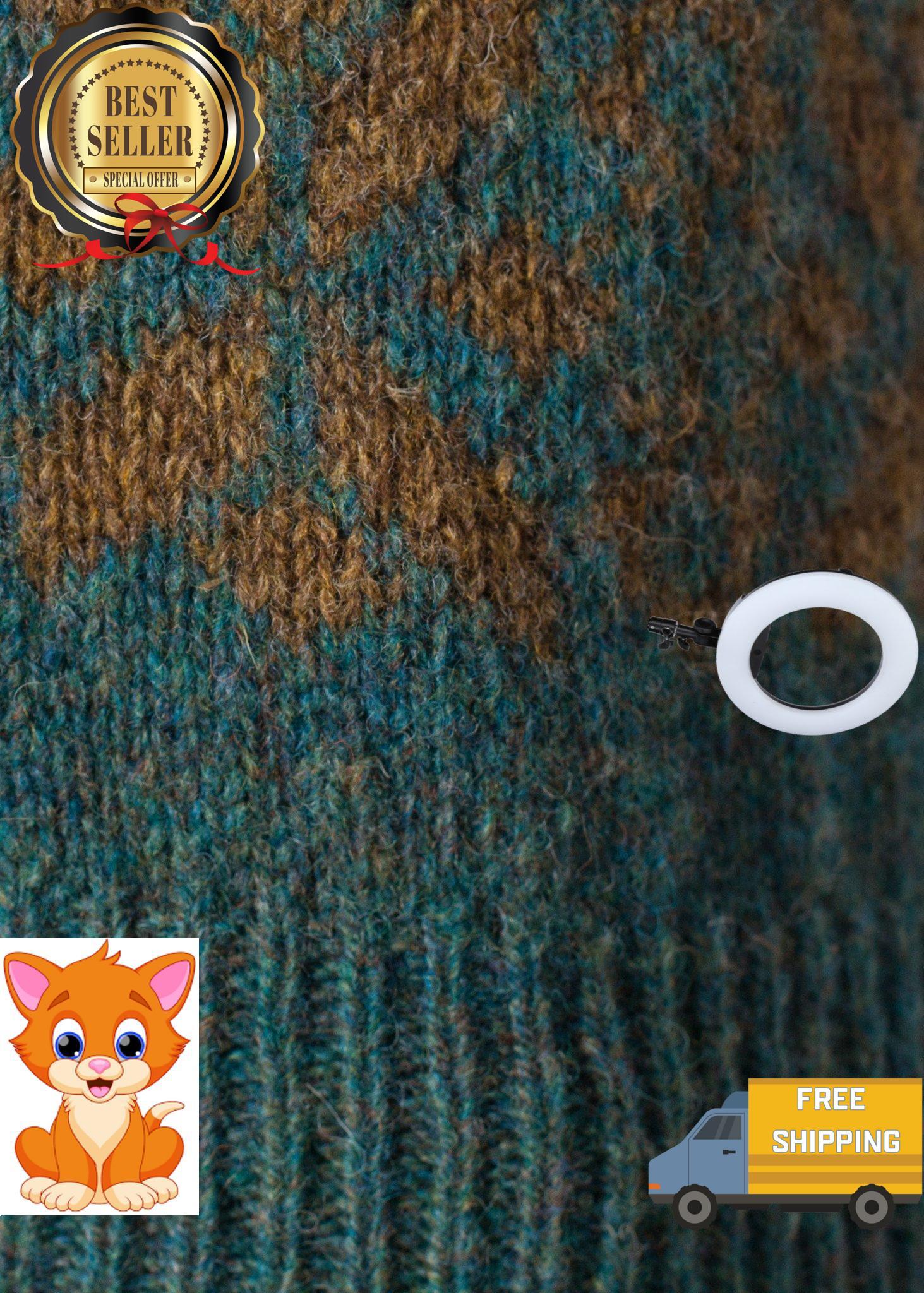 Fall tones define a V-neck vest with a Fair Isle motif. Ribbing is featured at the neck and hem. Nigel Cabourn. Color Army. 100% Wool. Lana is wearing the UK 8.