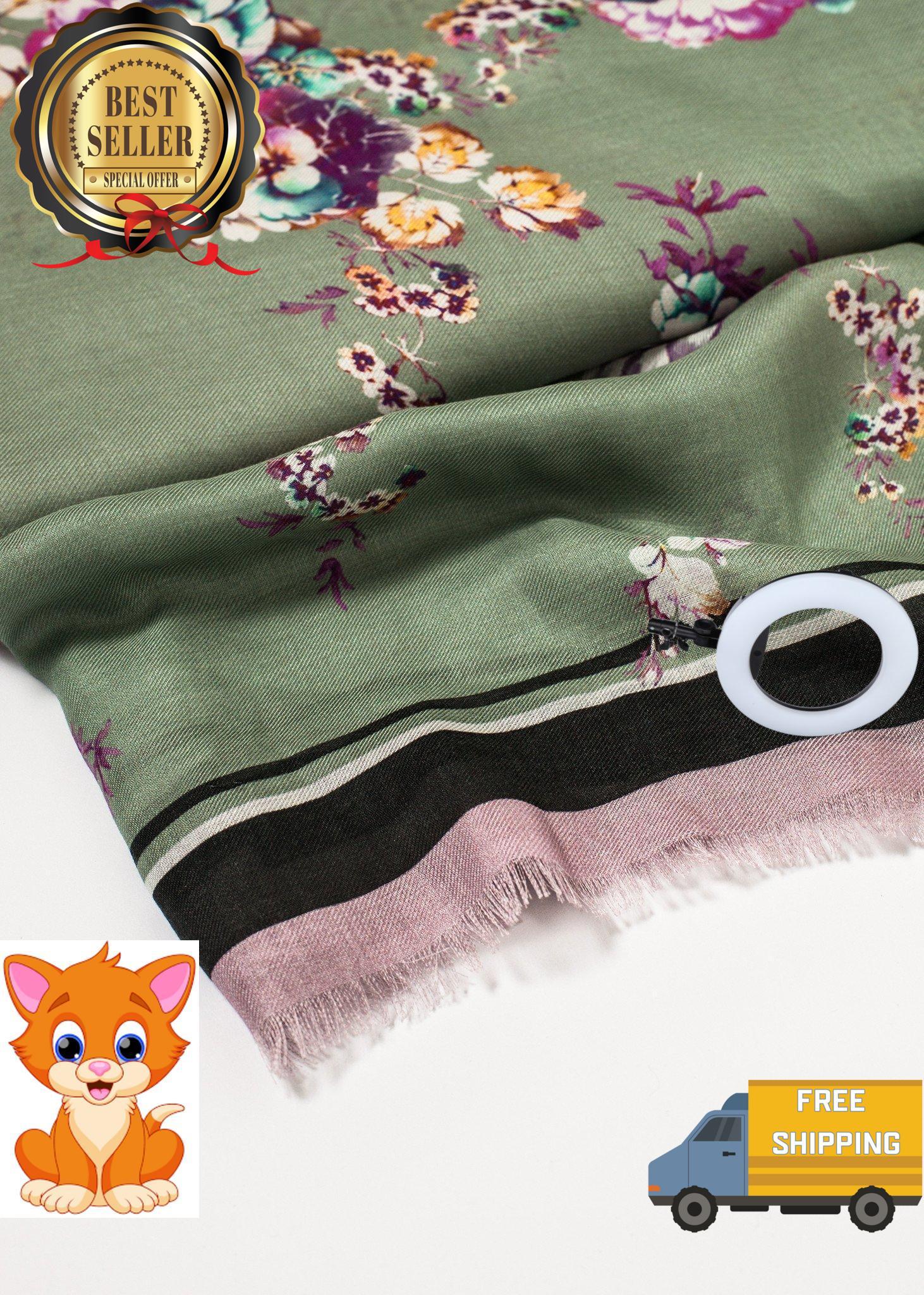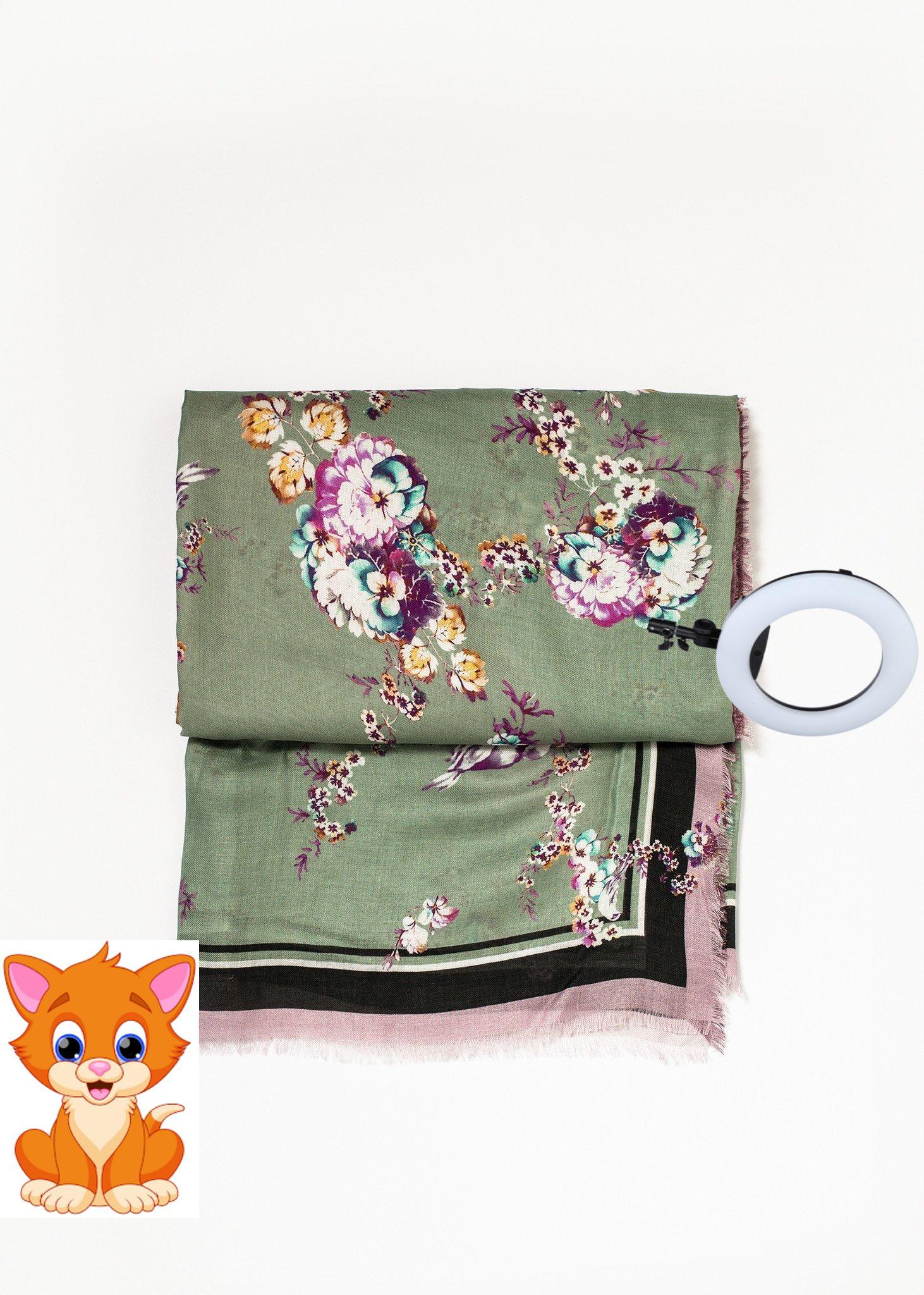 Flora and fauna, together as one. Springtime has arrived at Baby & Company with new accessory line Vassilisa is well represented in the world of fashion. Blooming pastels of exquisite patterning caress one;s neck in silky delight. Color Mauve. 10% Cashmere, 90% Modal. Made in the Italy. Length 55" X 55".