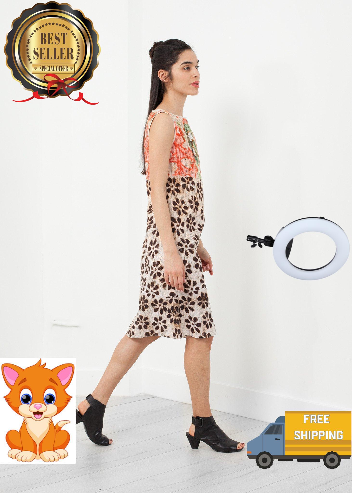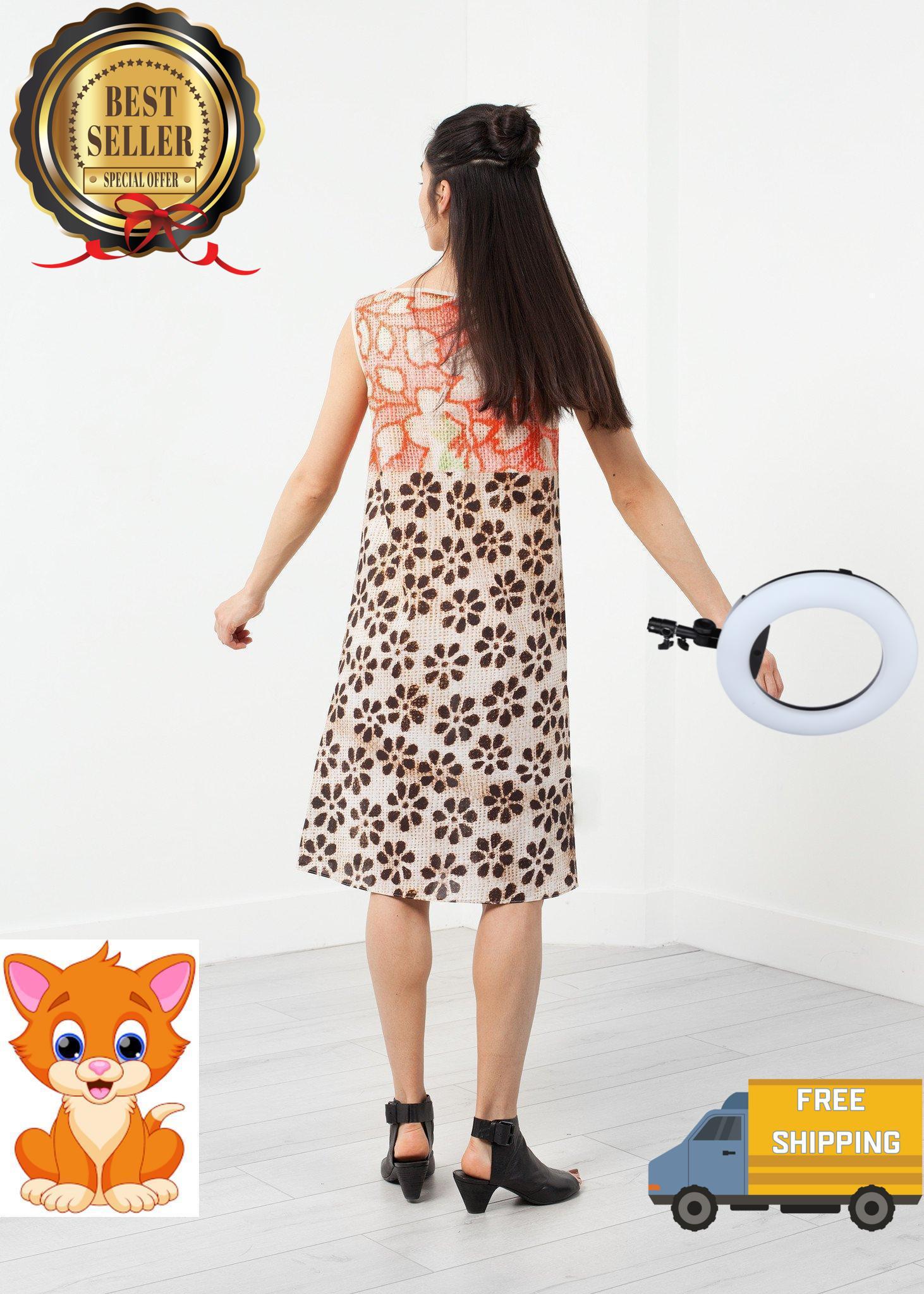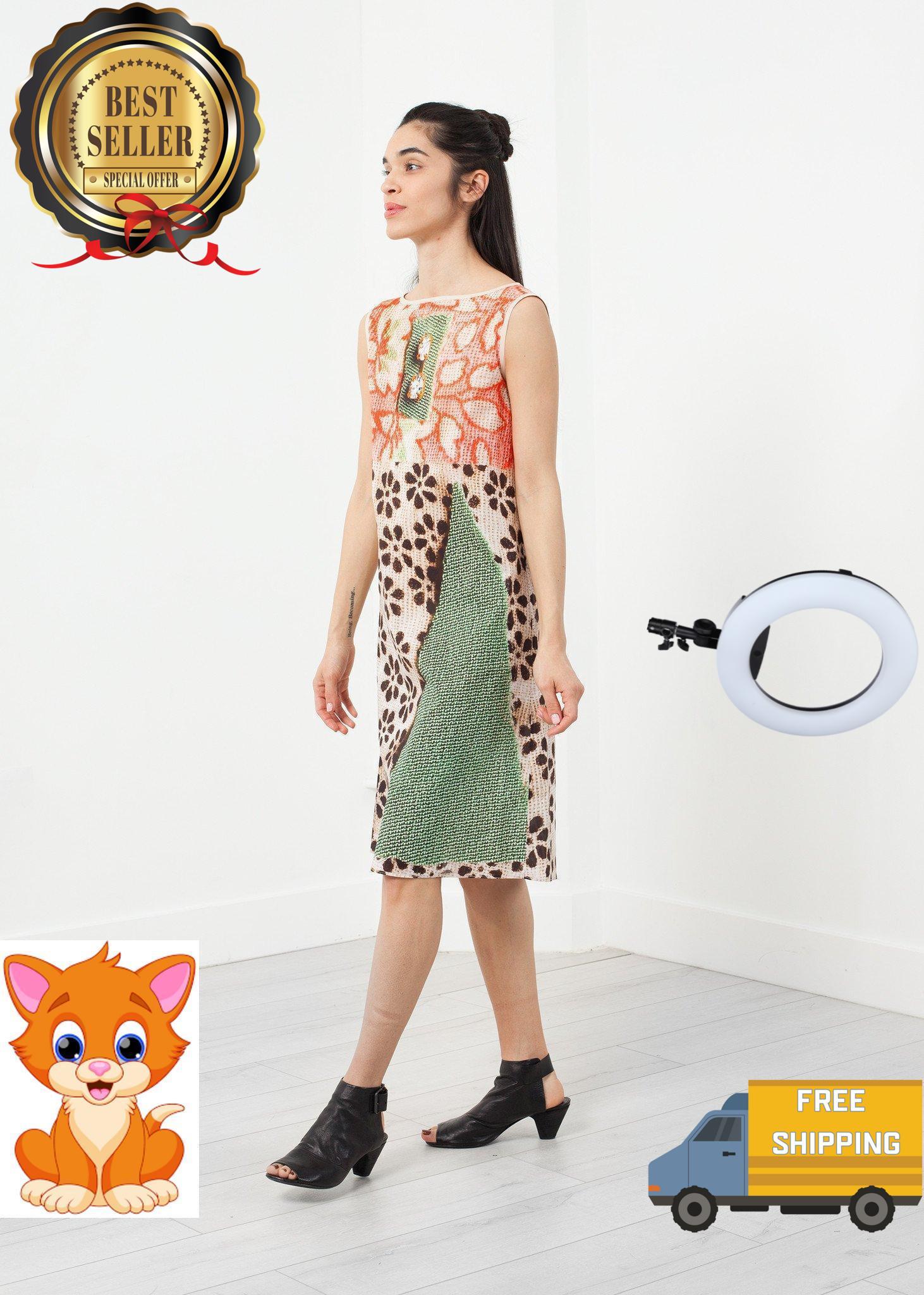 The Floral Sleeveless is a simple tunic in shape, but beauty to look on. Wide boat neckline. Antoni & Alison. Color Green Multi. 100% Cotton. Made in the U.K. Ashley is wearing a Size 8.