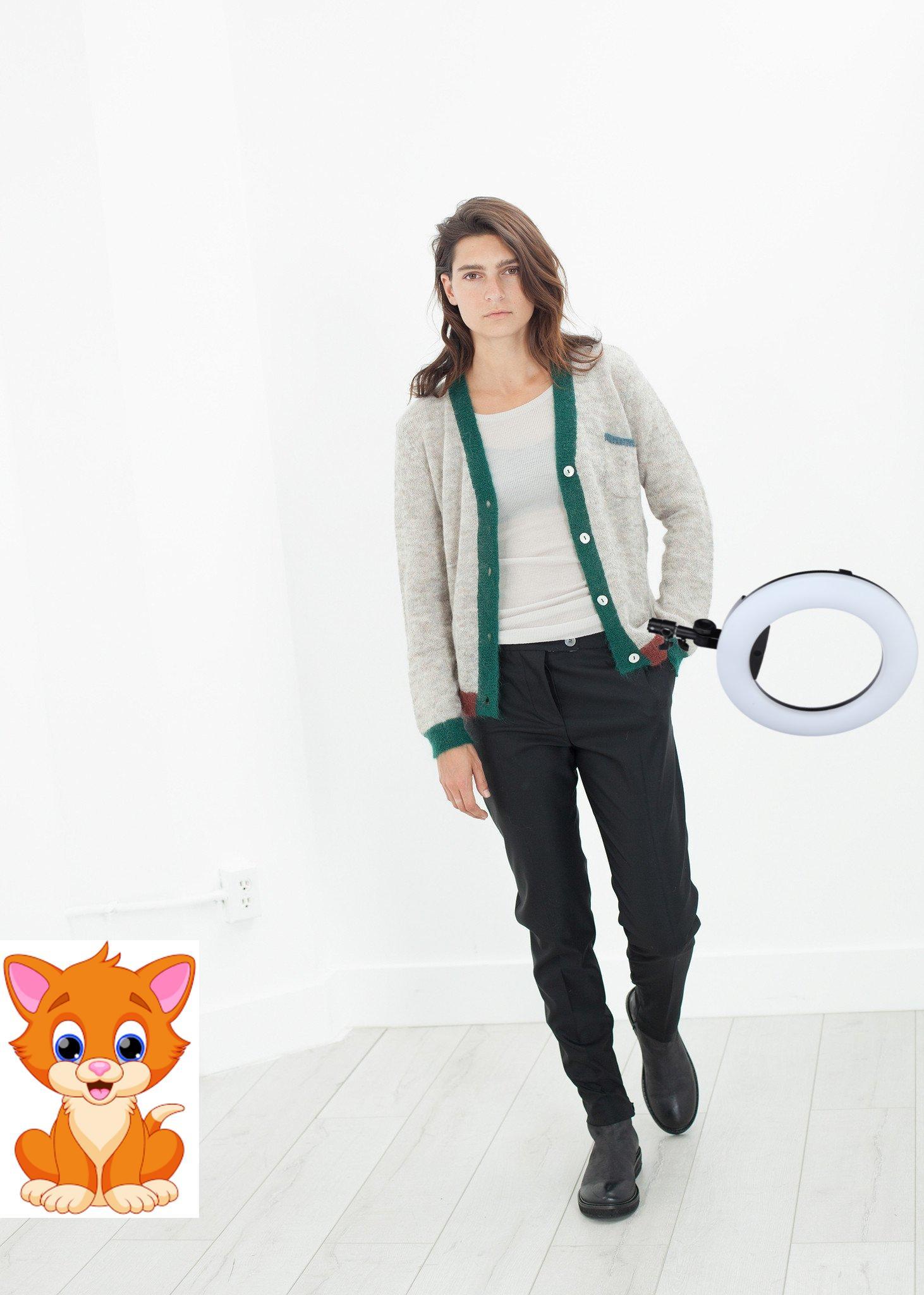 Classic and sharp, the Girlfriend Trouser sits firmly at the hip and slims the leg with the addition of an invisible zip at the inner ankle. Mother of pearl button through out, welt back pockets and button fly. La Prestic Ouiston. Color Black. 100% Wool. Lana is wearing a size 1.