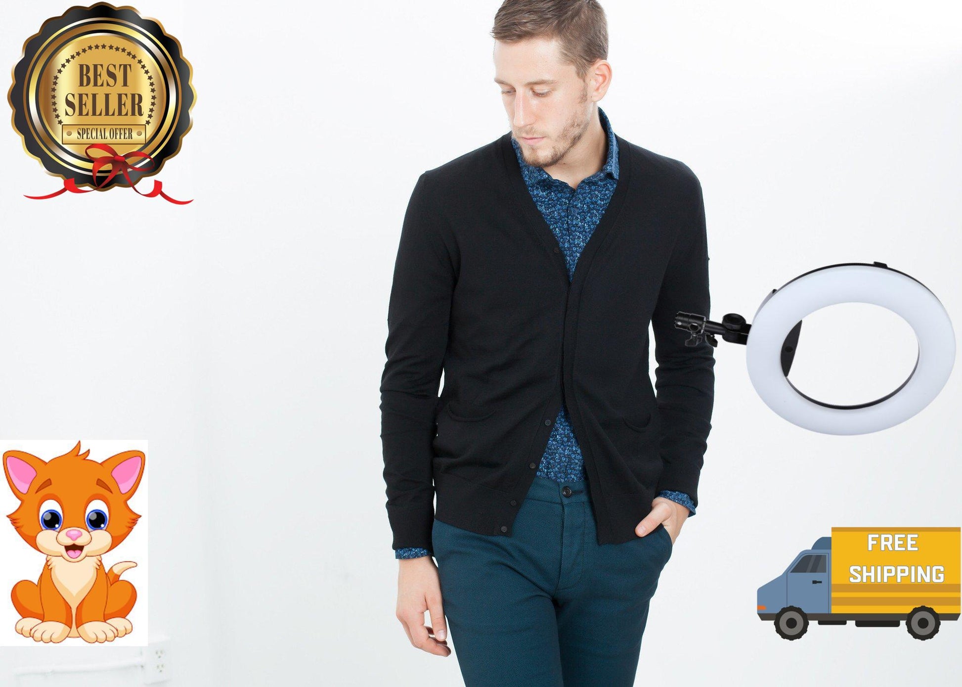 A merino wool cardigan in classic shape and length. A hidden button placket creates a clean line and the two patch pockets have a refined curl to the knit edge. Isabel Benenato. Color Black. 100% Extrafine Merino Wool. Matt is wearing a size Medium. Matt is 6’2”, Chest 38”, Waist 31”, Inseam 34.5”.