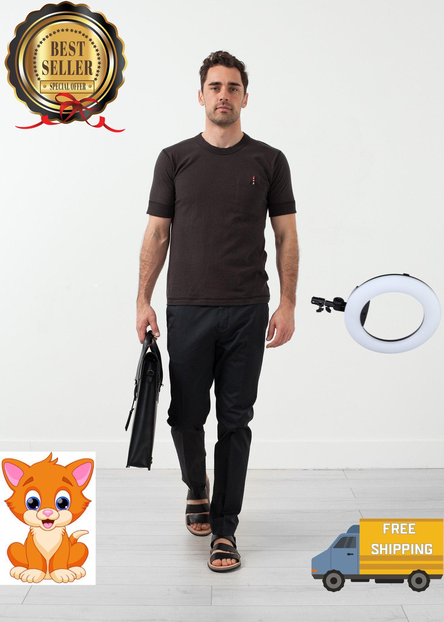 The Interlock Jersey Tee is exceeding in rank of comfort and look. Crew neckline, sleeves to mid bicep, and breast pocket at front left. Nigel Cabourn. Color Black. 100% Cotton. Made in England. Jacob is wearing a Size 48.