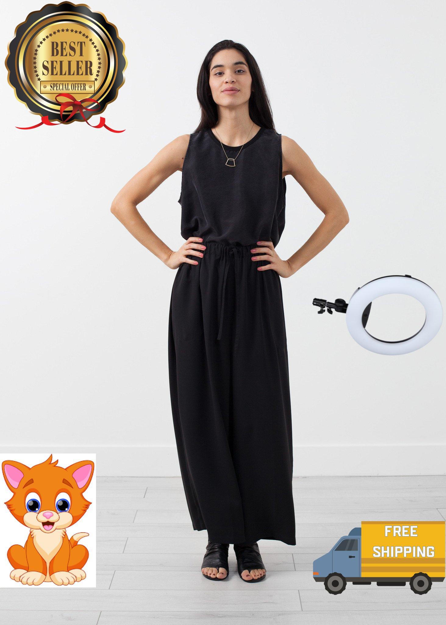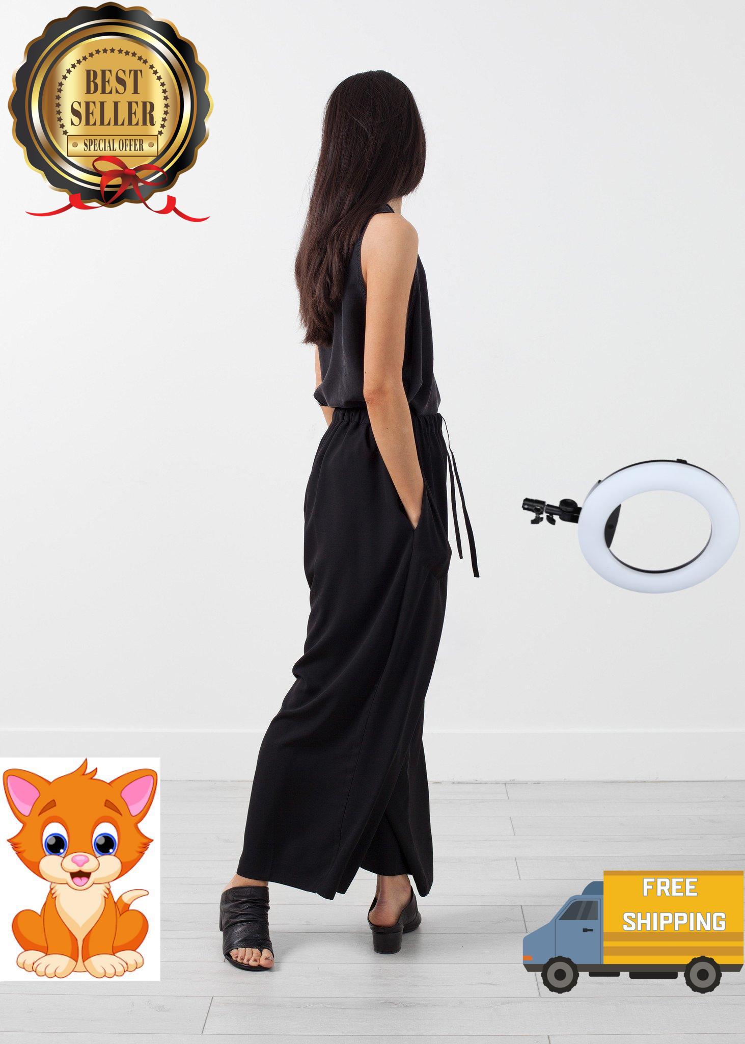 This wide leg is a flowing dream for the working wardrobe. Tie drawstring waistband. Ivan Grundahl. Color Black. 100% Polyester. Made in Portugal. Ashley is wearing a Size 36.