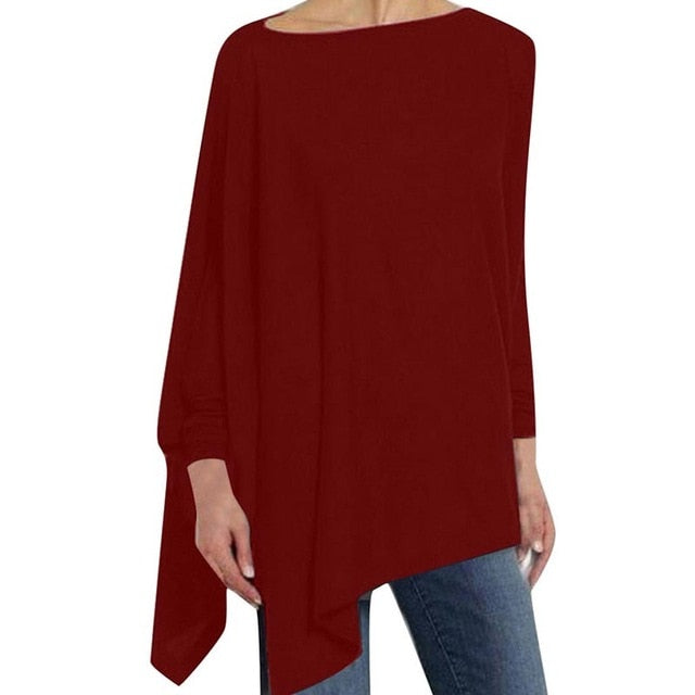 Jocoo Jolee Cotton Irregular Womens Tops And Blouses Casual O Neck Long Sleeve Loose Shirt Female Solid Sweatshirt Solid Pullove