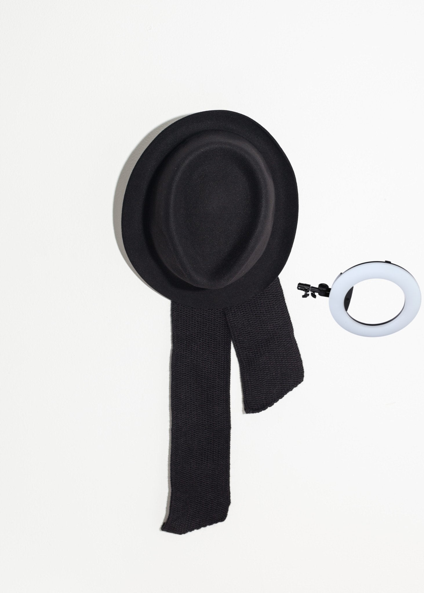 Internationally acclaimed hat designer, Fiona Bennett, offers superior-made headwear of fur felt and Alpaca wool through her new label, Kiss by Fiona Bennett. Sleek, classic, and comfortable, her pieces are crafted to age well while offering relevant statements. The Kate Hat with attached scarf gives the two in one. Color Black. 100% Fur Felt, 100% Alpaca Wool. Made in Berlin.