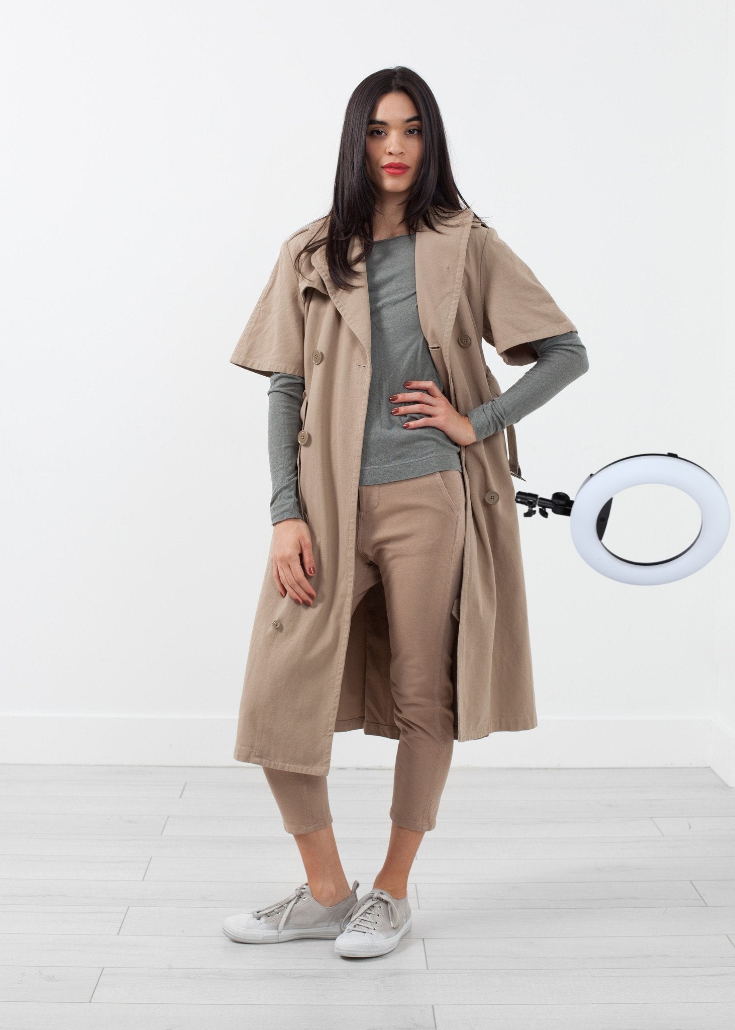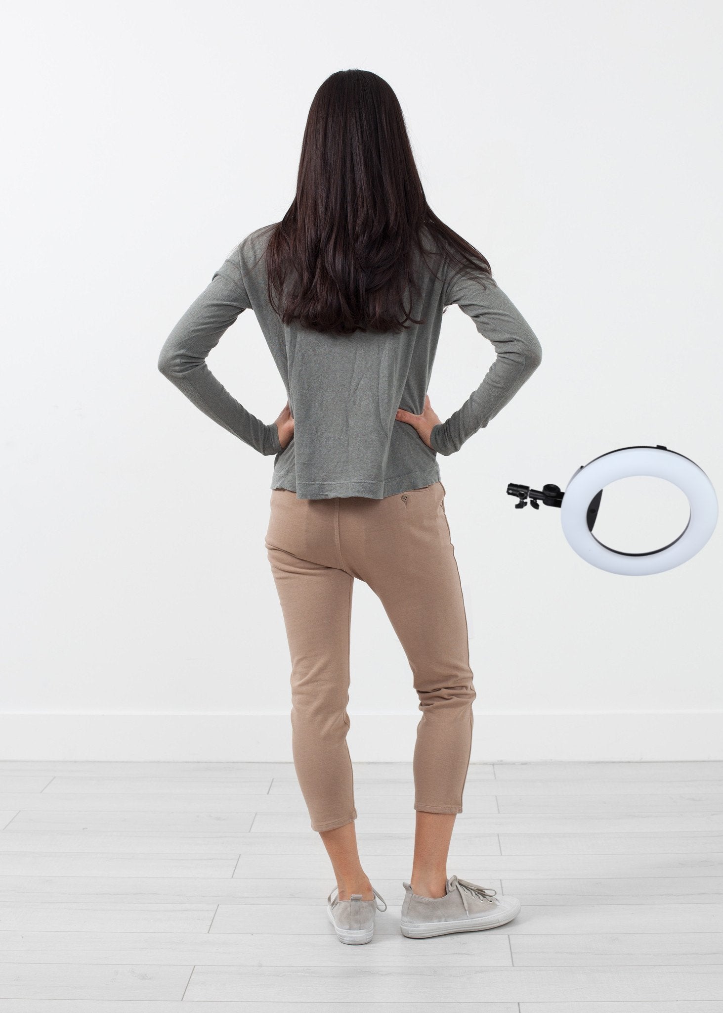 The Chino is just the right amount of casual to offbeat. Knit material offers comfortable stretch right where it's needed. Side angled pockets at front with single coin pocket, two exterior pockets at back. Button fly closure at front. NLST. Color Khaki. 100% Cotton. Ashley is wearing a X-Small.