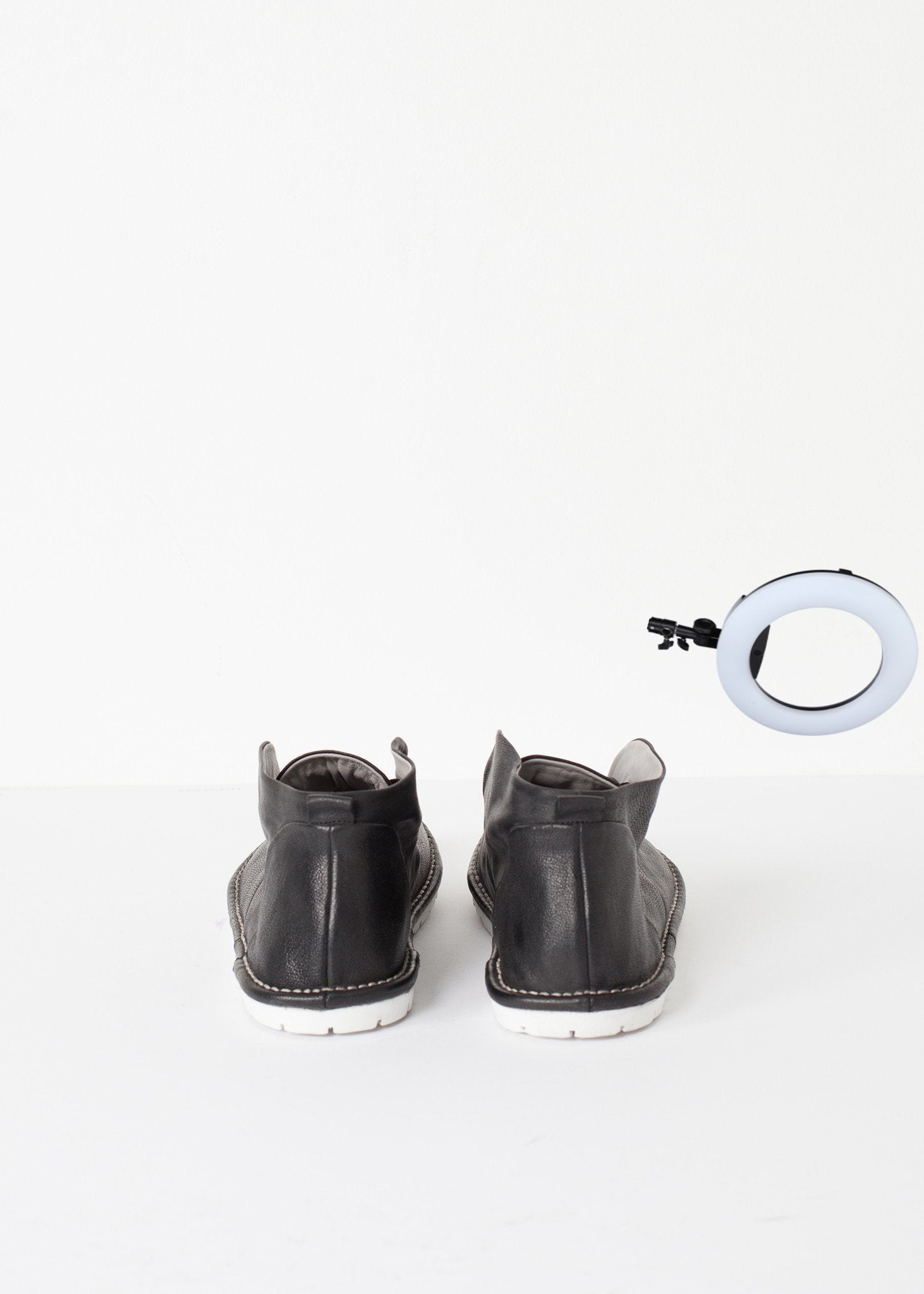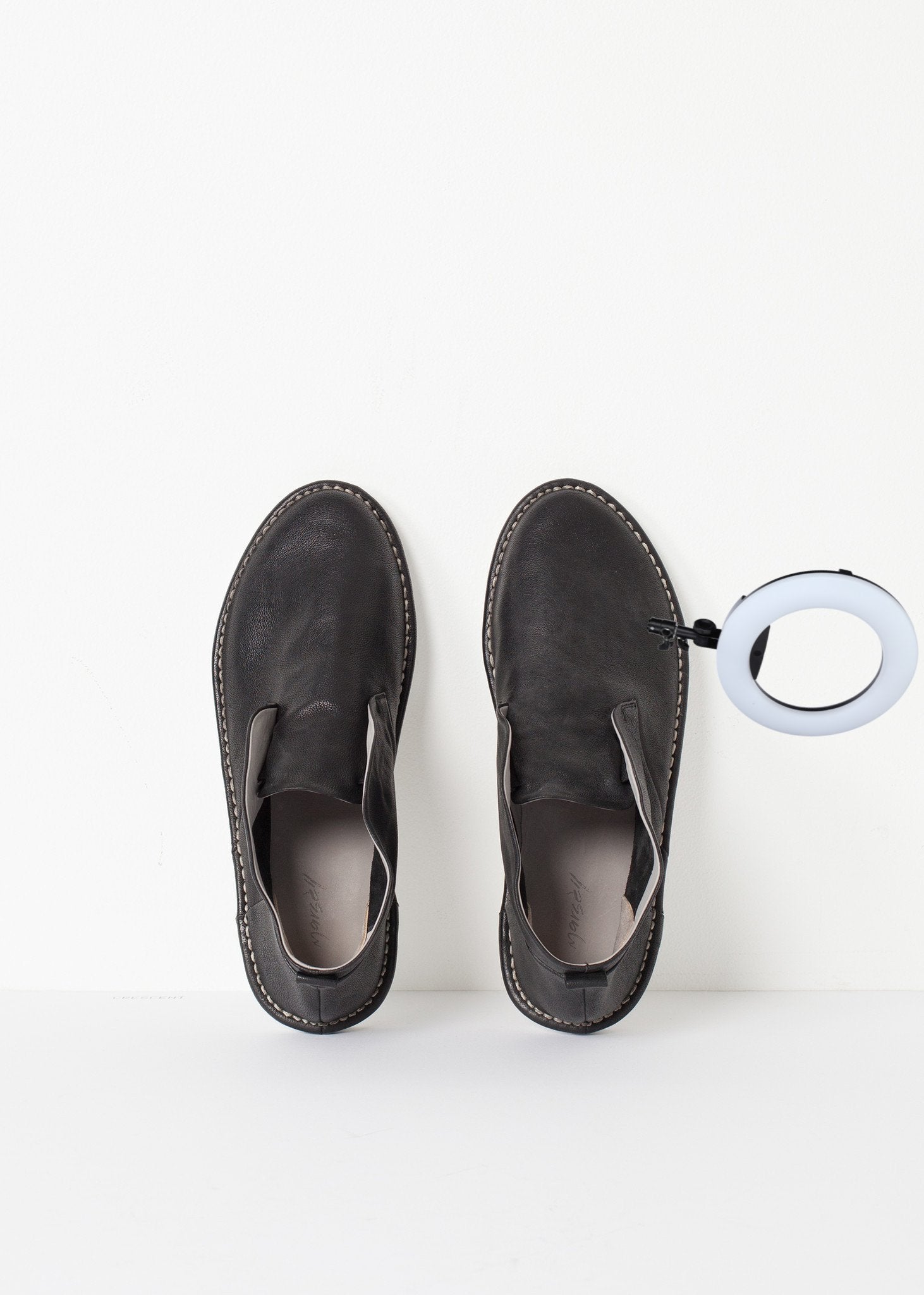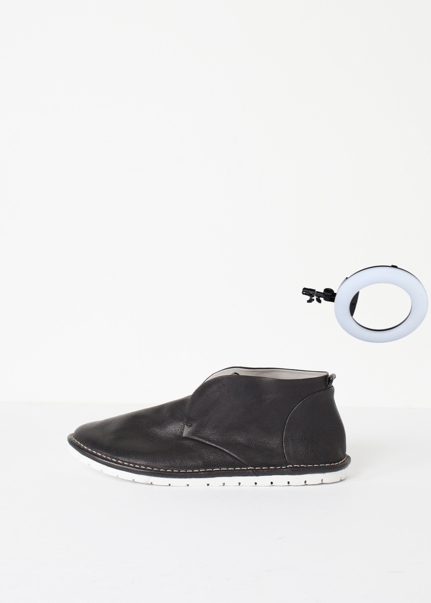 Married aesthetics of innovation and tradition, Marséll crafts shoes of mastering technique. Where modern classism takes wearable shape, anticipate artistic expression epitomized in leather footwear. Imagine that standard sneaker, but made of leather. That's what you'll find with Marsell's men's footwear collection. Easy on and off access, the Sneakers are uniquely versatile in footwear. Color Black. 100% Leather. Made in Italy.