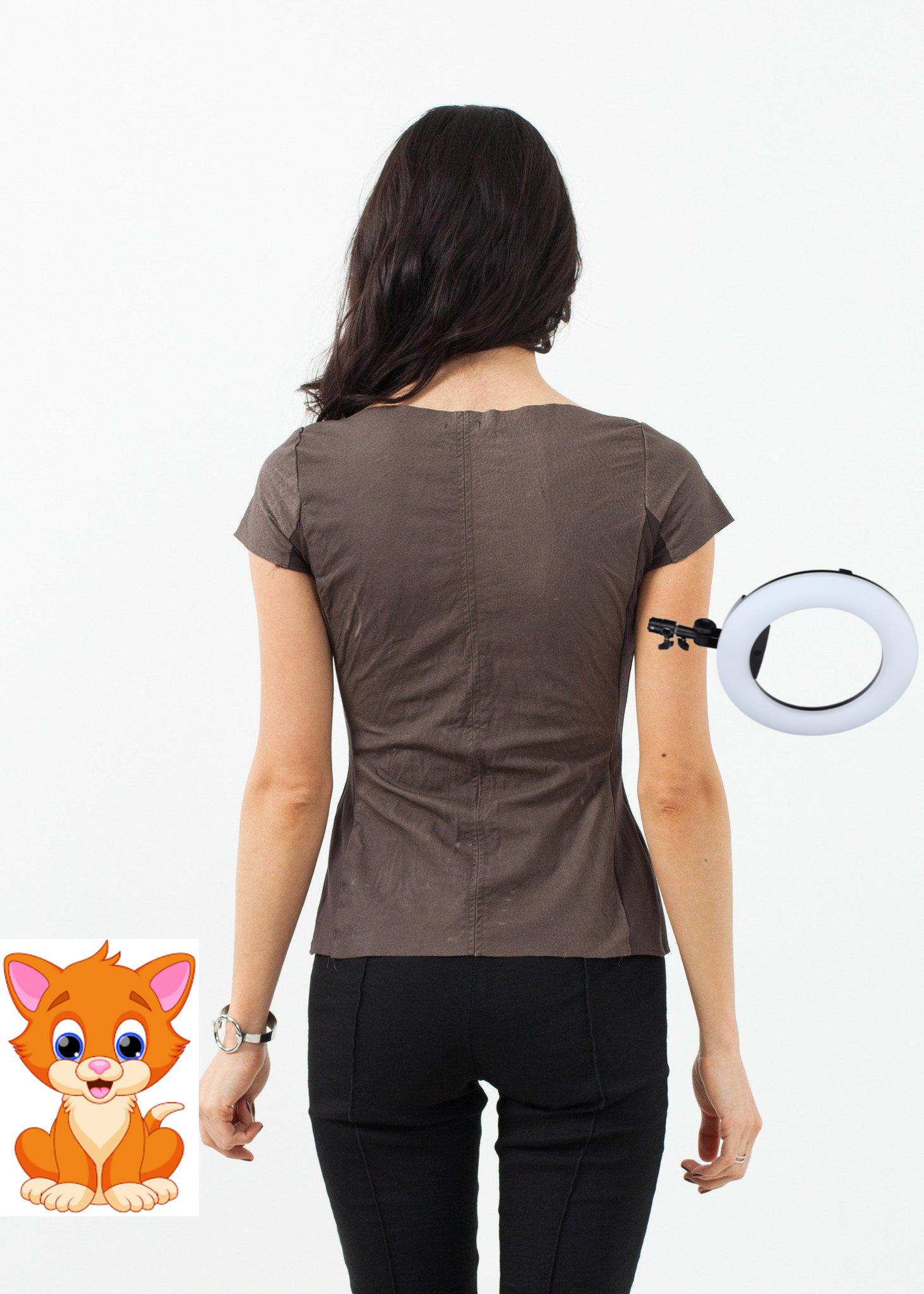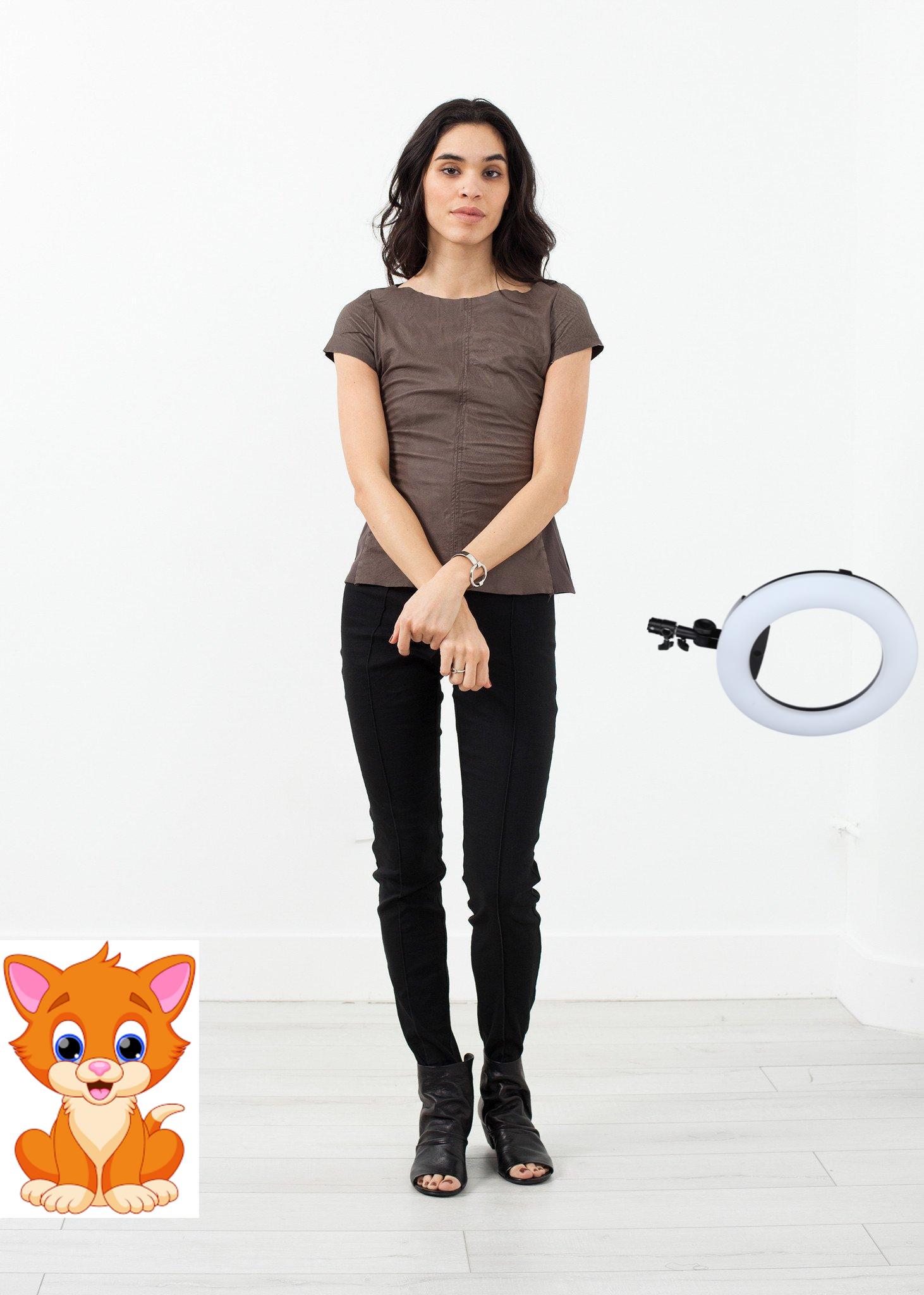 The Leather T is an industrious piece with its unfinished hems and sueded leather. Constructed of contrasting panels, the T is a flattering fit and shapely. Scoop neckline. Capped sleeves. Hazel Brown. Color Grey. 100% Pigsuede, 2nd Fabric 100% Cotton. Ashley is wearing the size 1.