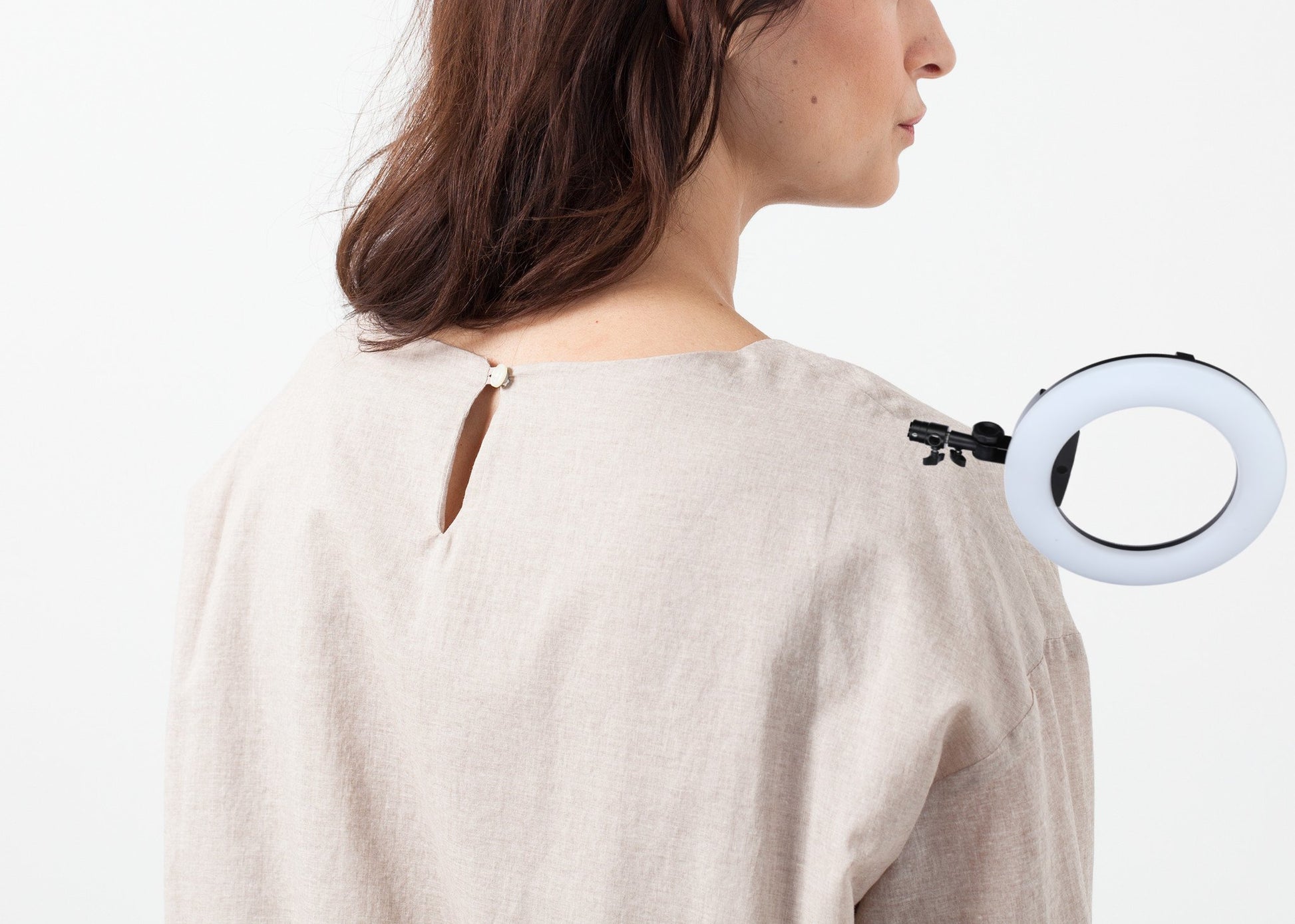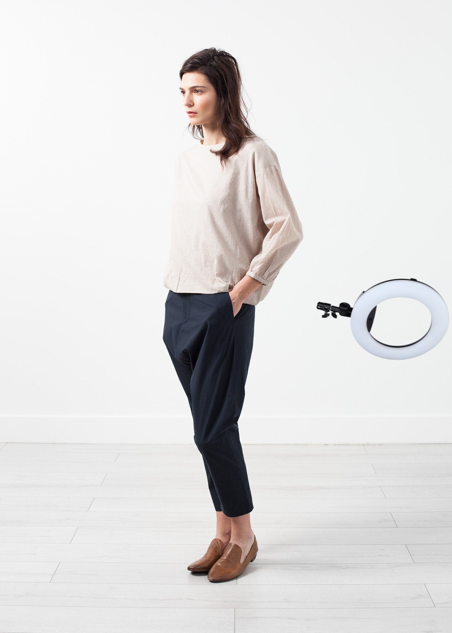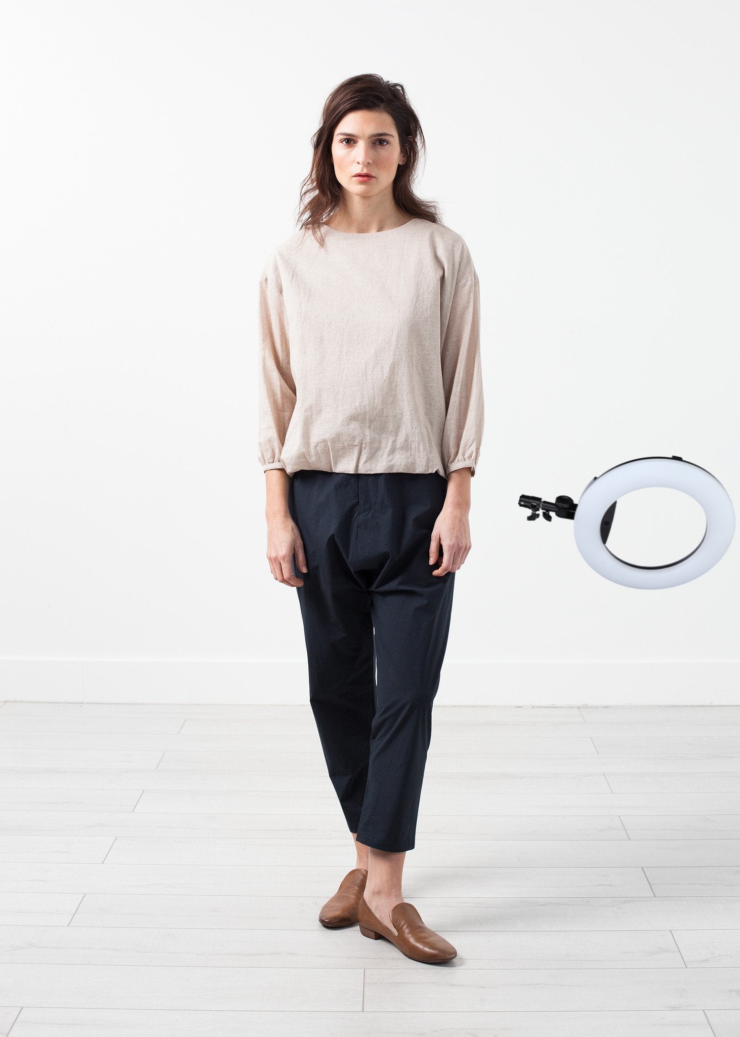 The Marshmallow is a sweet piece for 2015. Wide scoop neckline. Elastic band at waist. Single button closure at center back neck. Lined. Nicholson & Nicholson. Color Beige. 100% Cotton. Made in Japan. Lana is wearing a French 38.
